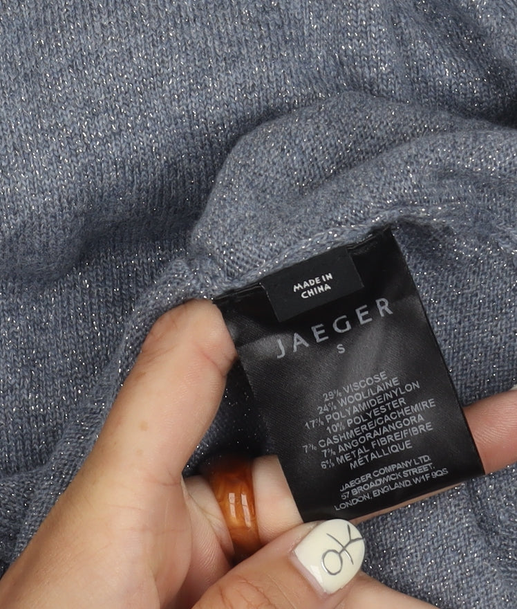 - Material Breakdown: 29% Viscose 24% Wool 17% Nylon 10% Polyester 7% Cashmere 7% Angora 6% Metallic