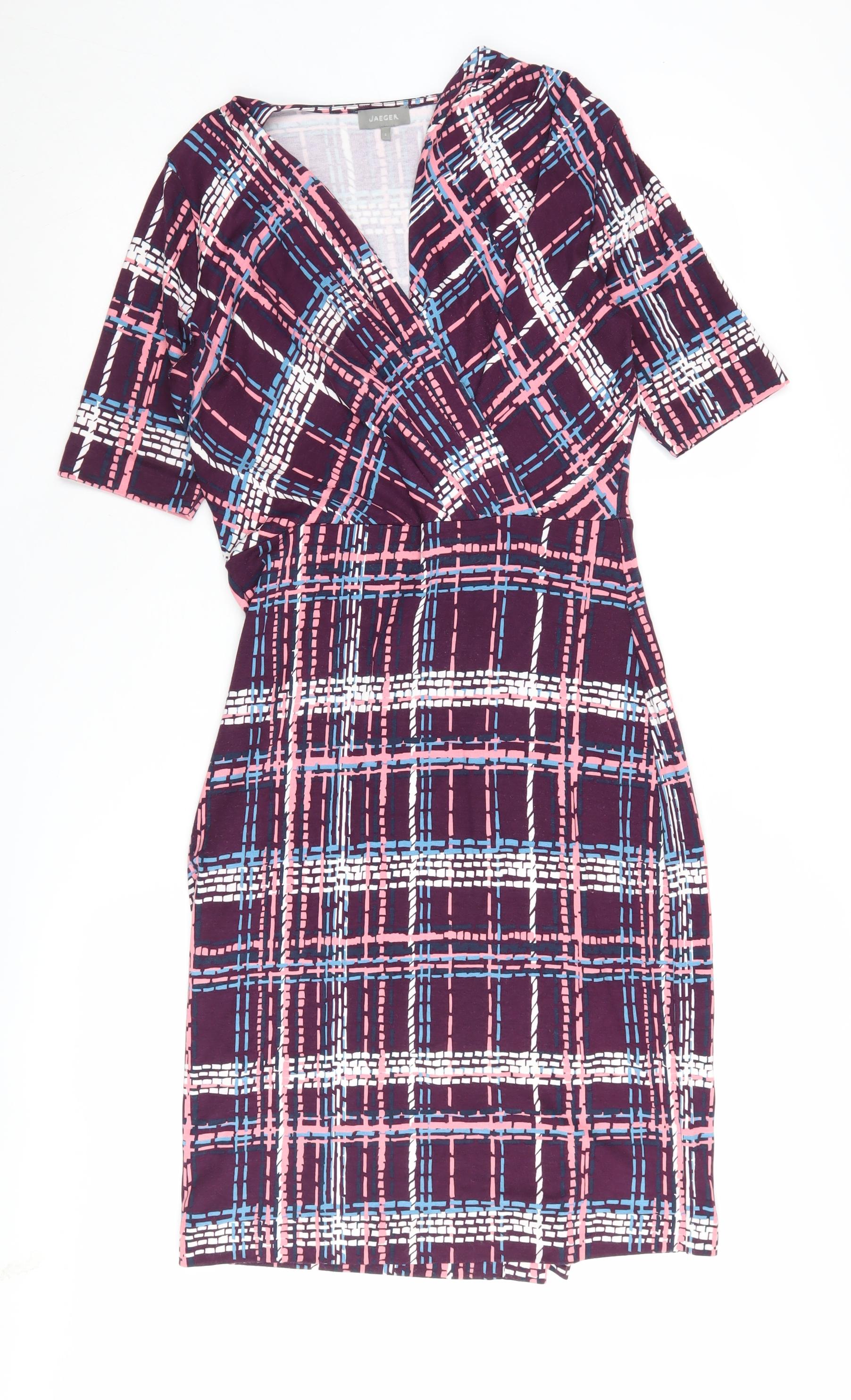 Jaeger Women's Multicoloured Check Wrap Dress, Size S