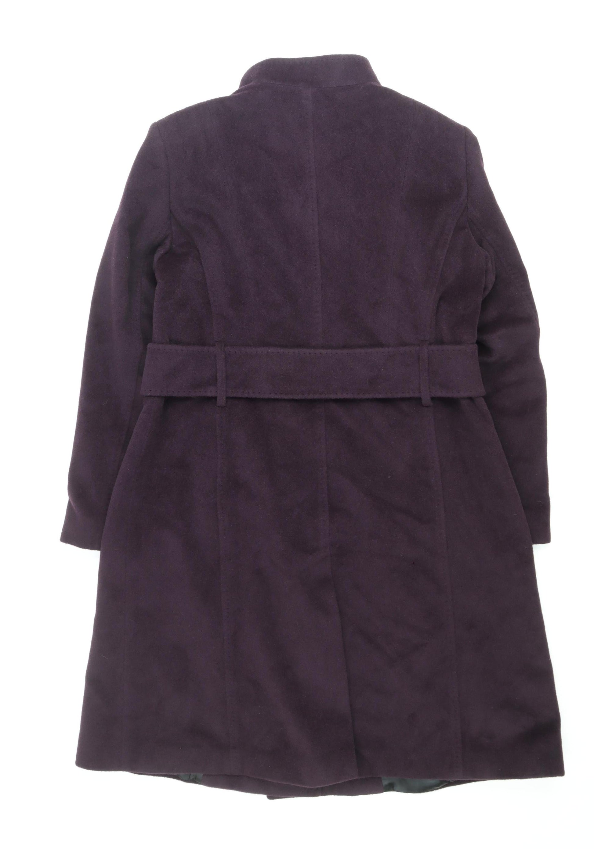 Jaeger Women's Purple Wool Cashmere Belted Overcoat Size 16