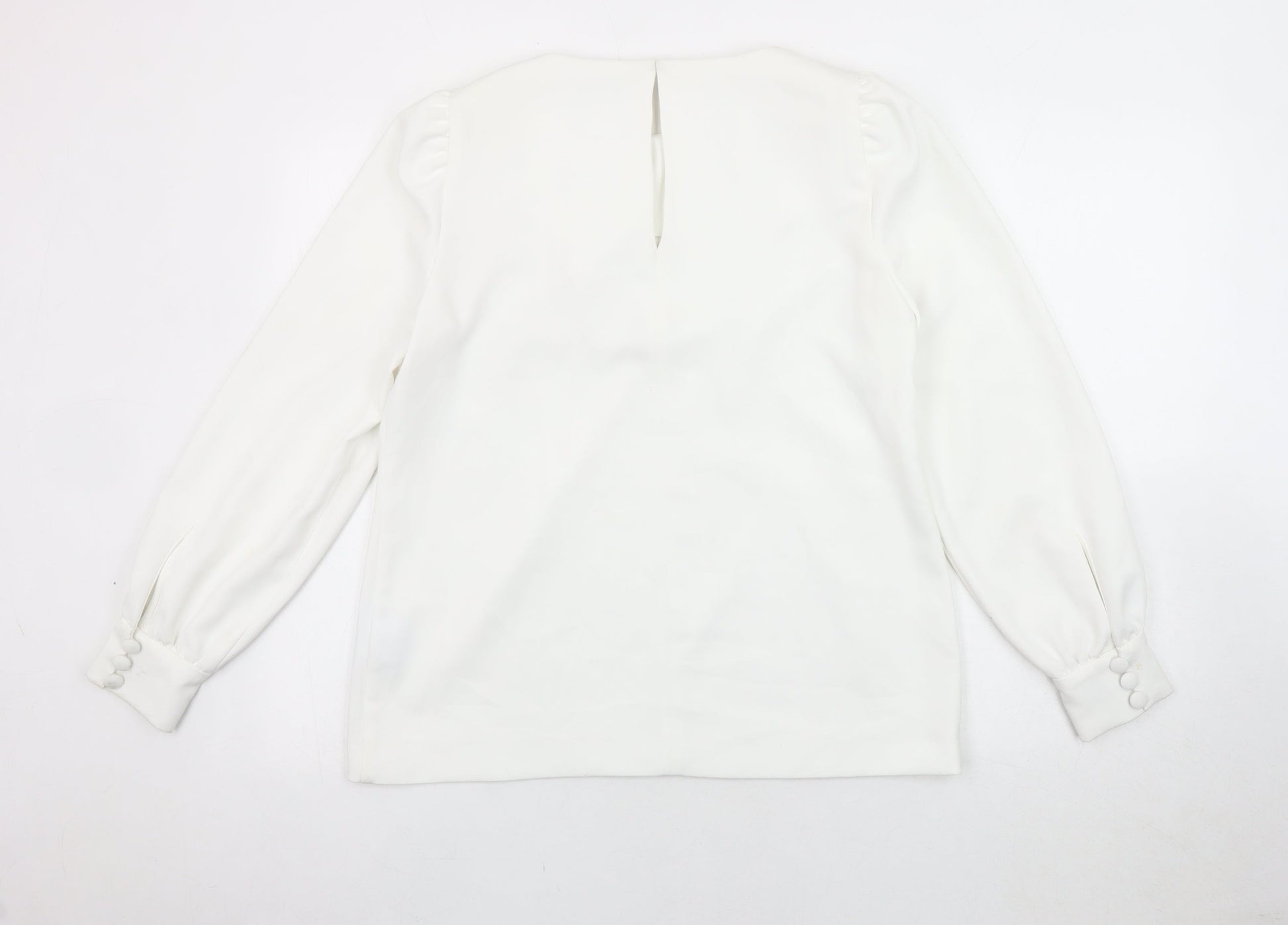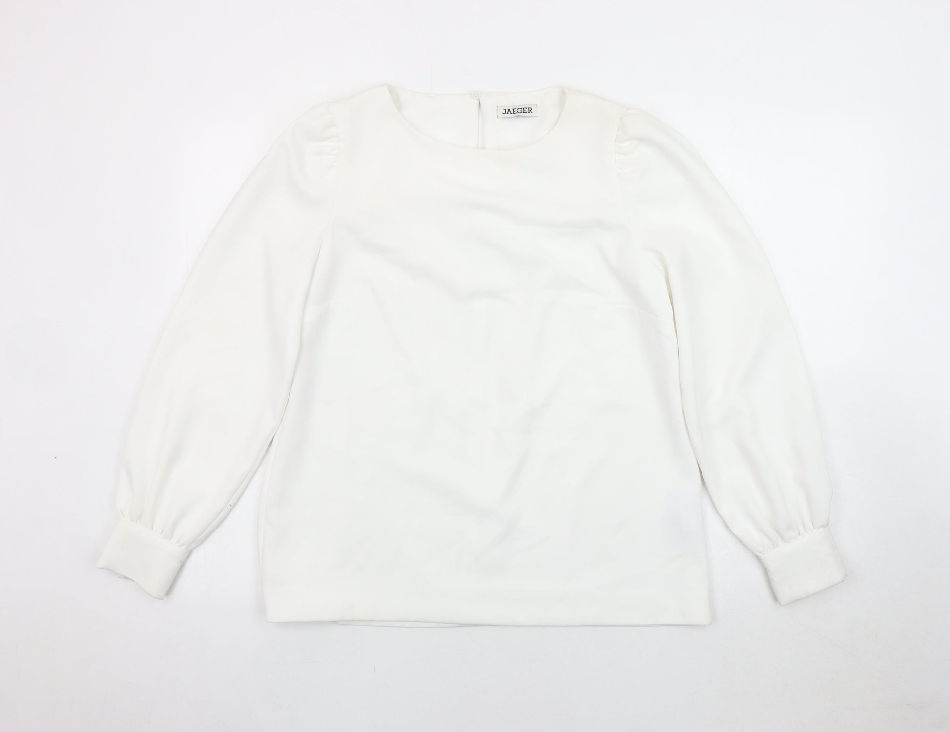 Jaeger Women's White Blouse Size 12 with Button Accents