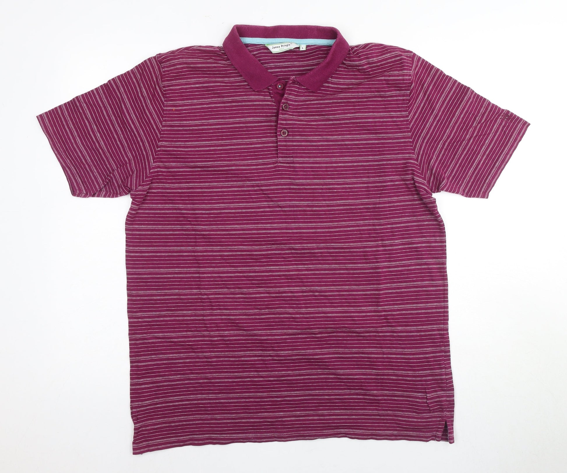 James Pringle Golf Men's Purple Striped Polo Shirt L
