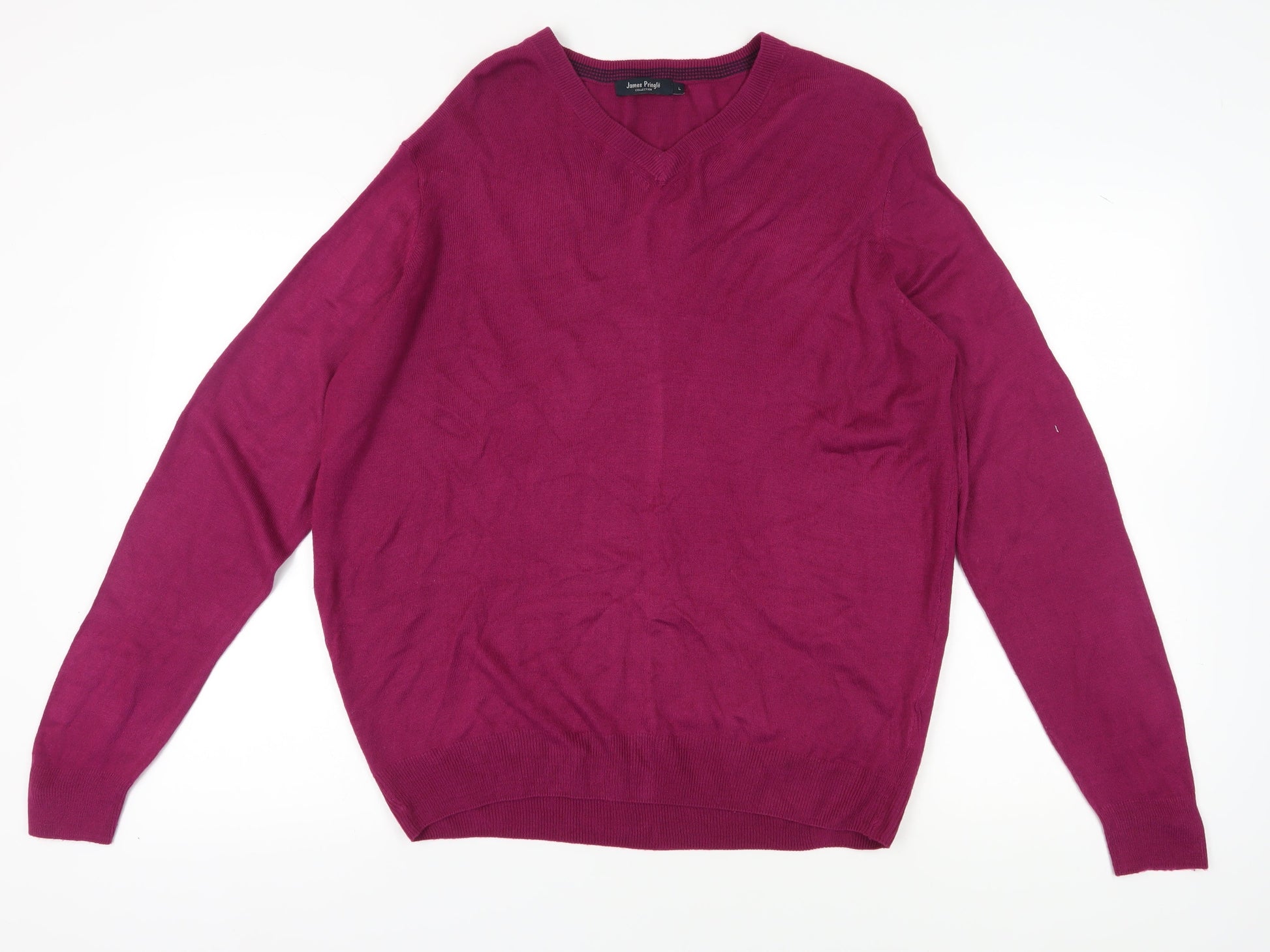 James Pringle Men's L Purple V-Neck Pullover Jumper