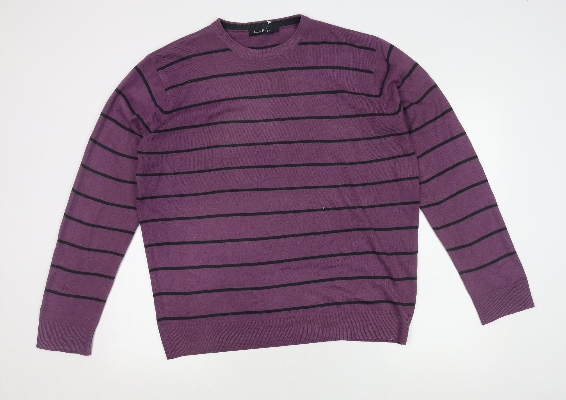 James Pringle Men's Purple Striped Pullover Jumper, L