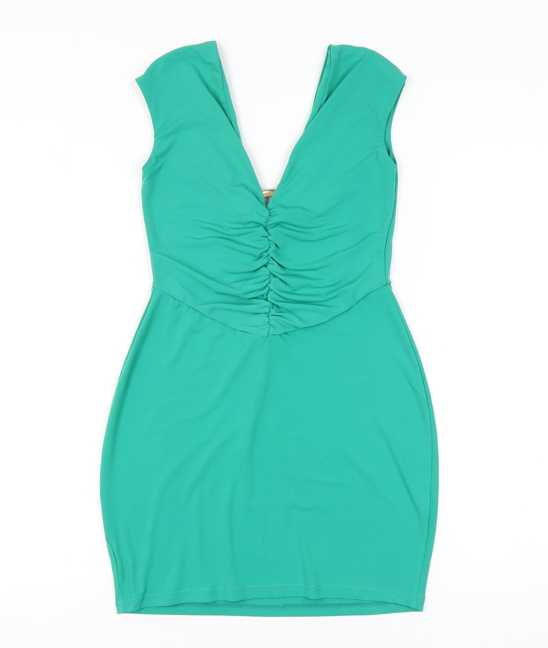 Jane Norman Green Sleeveless Ruched Dress Size 12