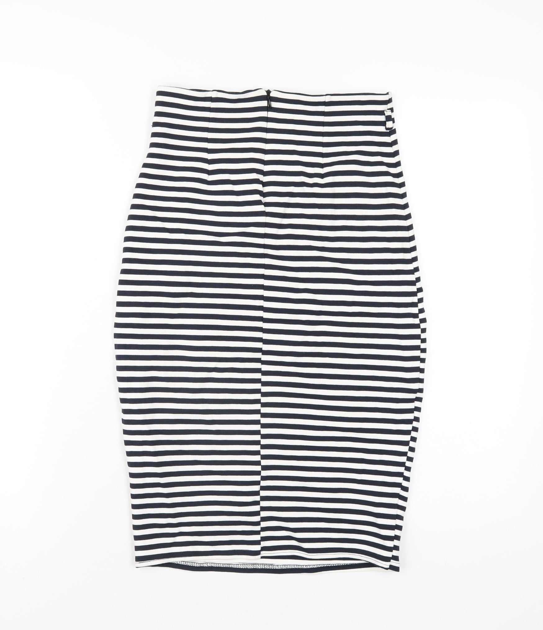 Jane Norman Womens Blue Striped Polyester Straight & Pencil Skirt Size 24 in Zip