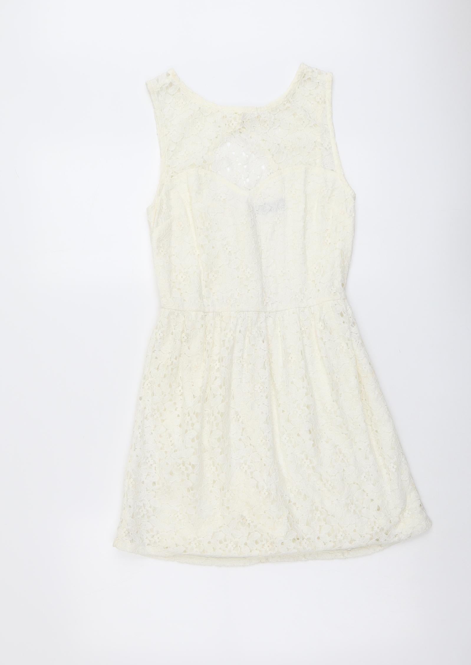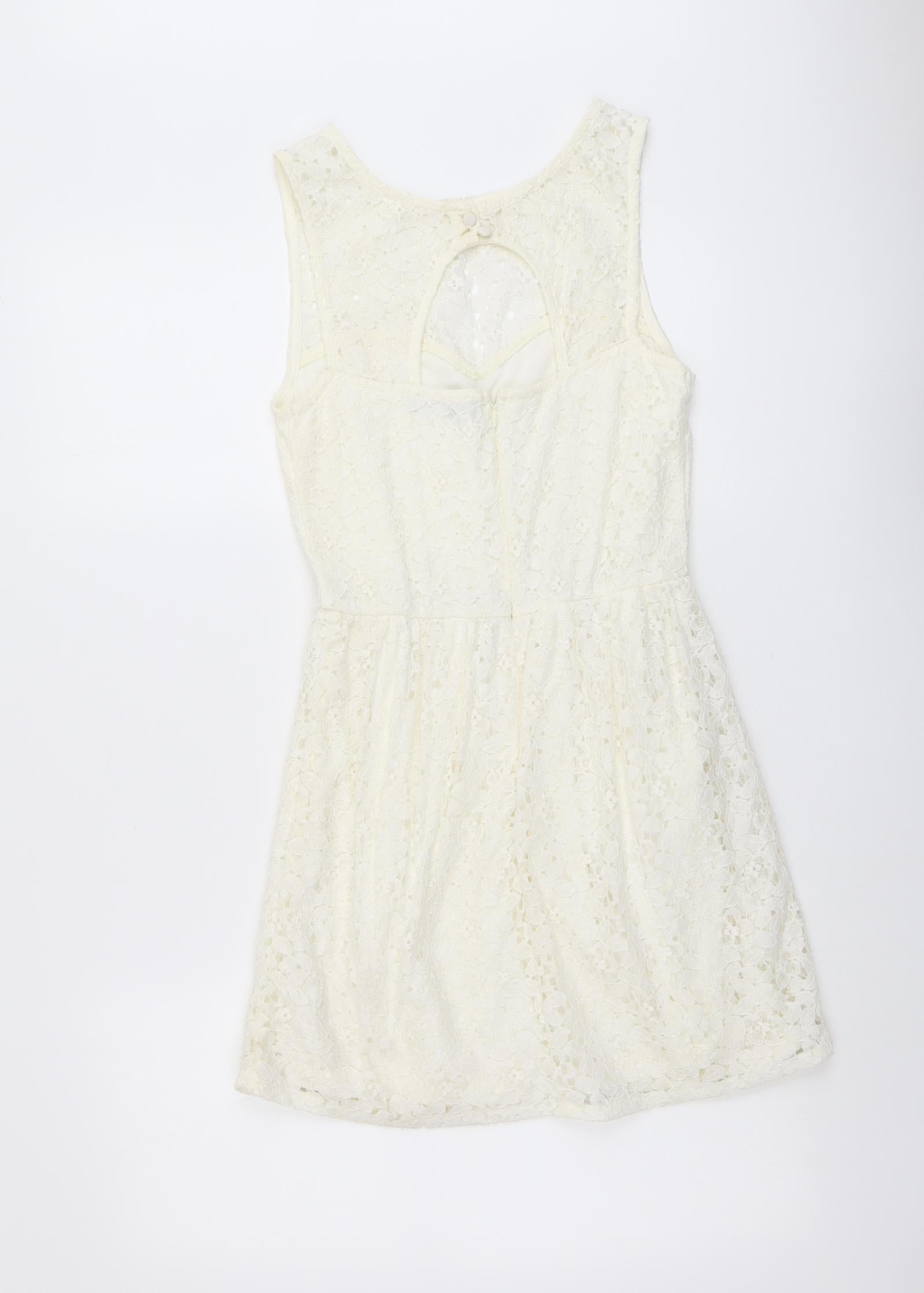 Jane Norman Womens Ivory Floral Cotton A-Line Size 6 Round Neck Button