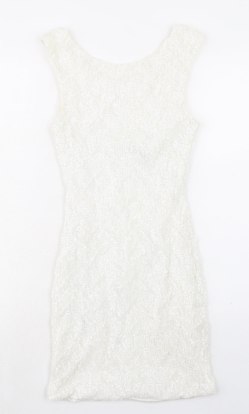 Jane Norman Womens Ivory Polyester Shift Size 12 Round Neck Pullover