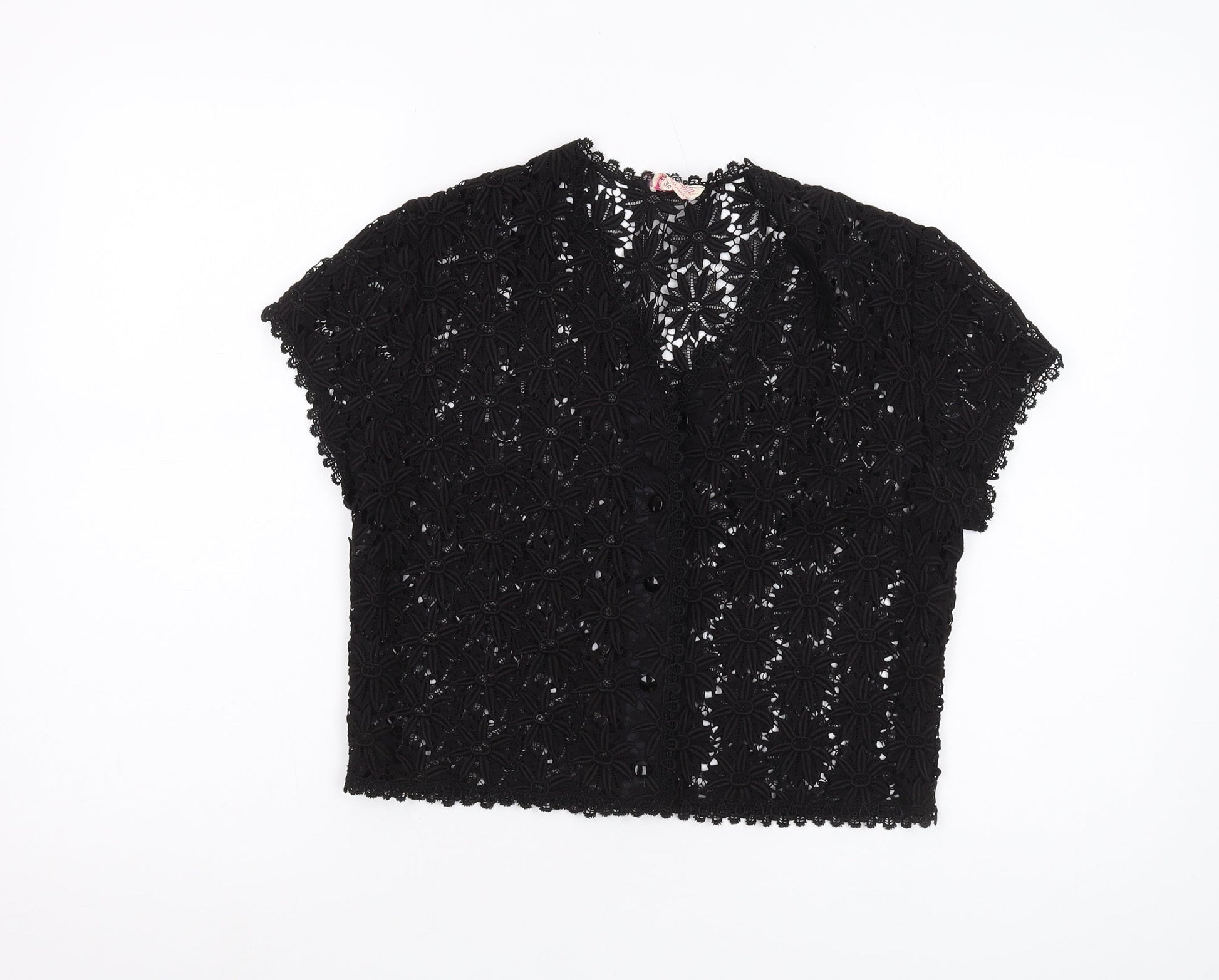 Janet Cotton Women's Black Crochet Cropped Blouse, Size 8