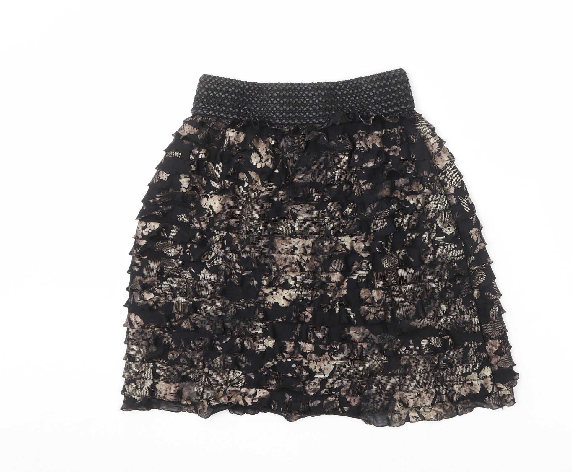 Javier Simorra Womens Black Floral Polyester A-Line Skirt Size 10