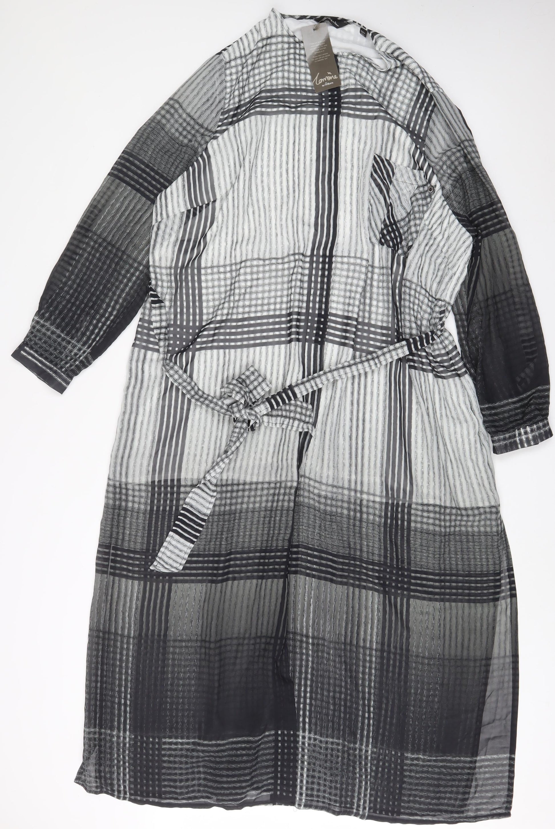 JD Williams Womens Grey Plaid Polyester A-Line Size 26 Crew Neck Button