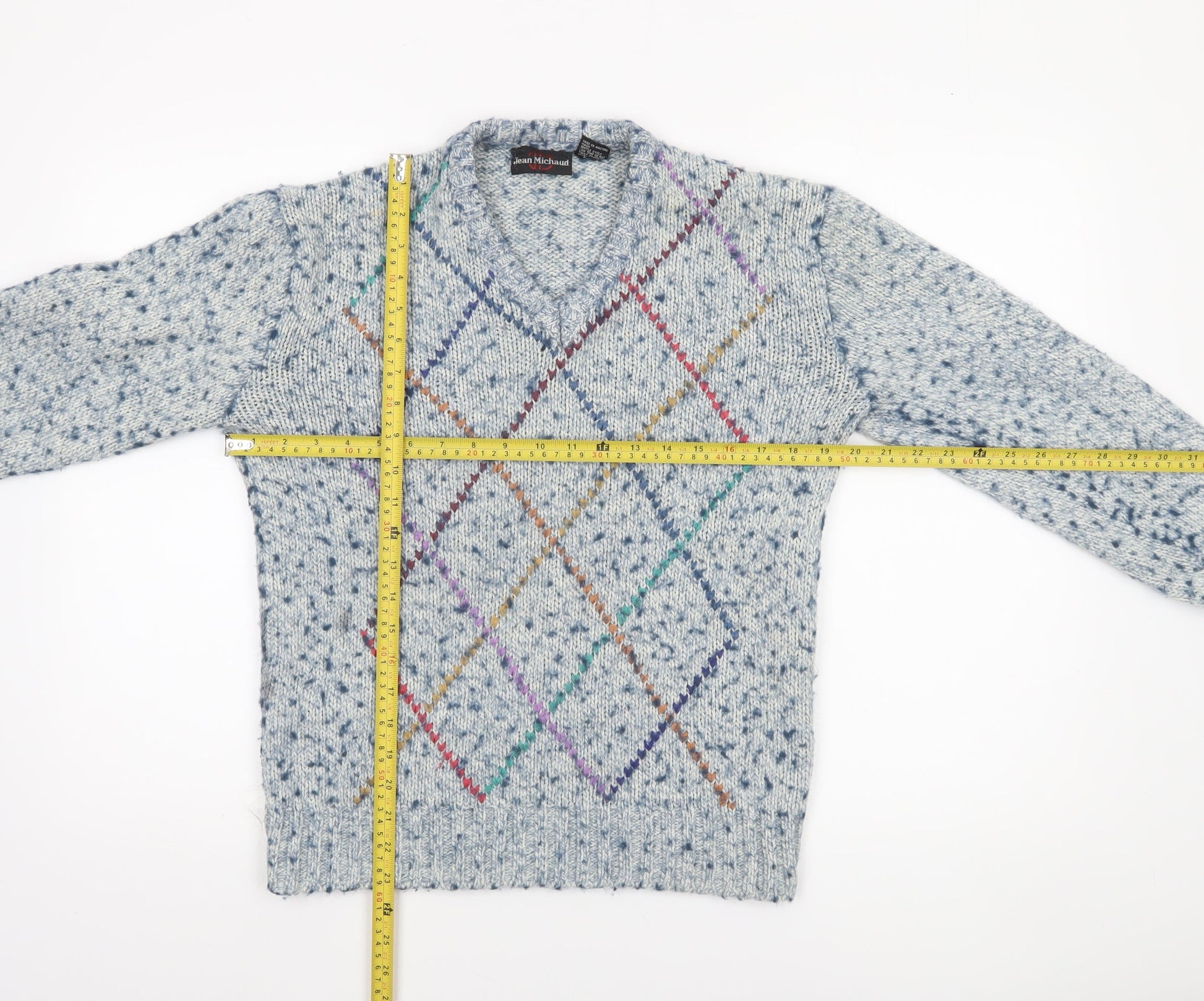 Jean Michaud Men's Blue Argyle Chunky-Knit Wool Blend Pullover Jumper M