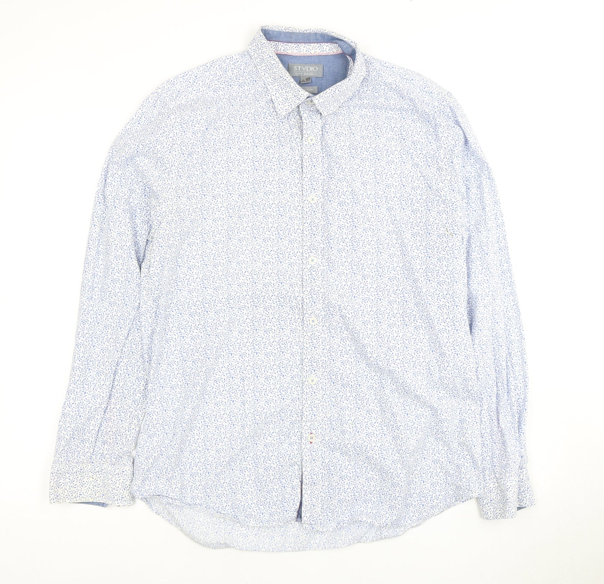 Jeff Banks Men's Blue Floral Dress Shirt L