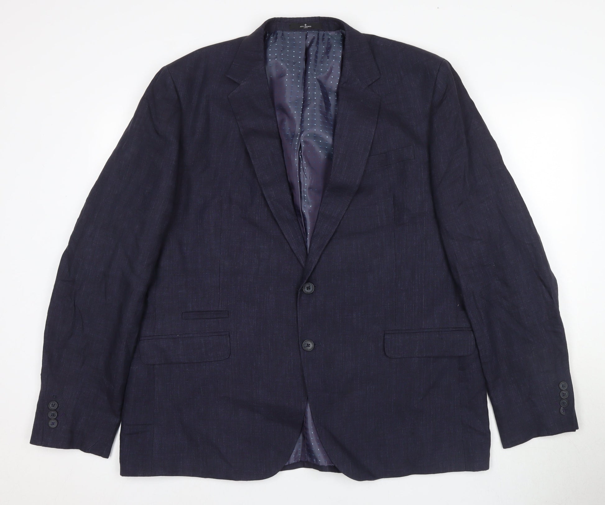 Jeff Banks Men's Blue Linen Blazer 20 Regular Lined