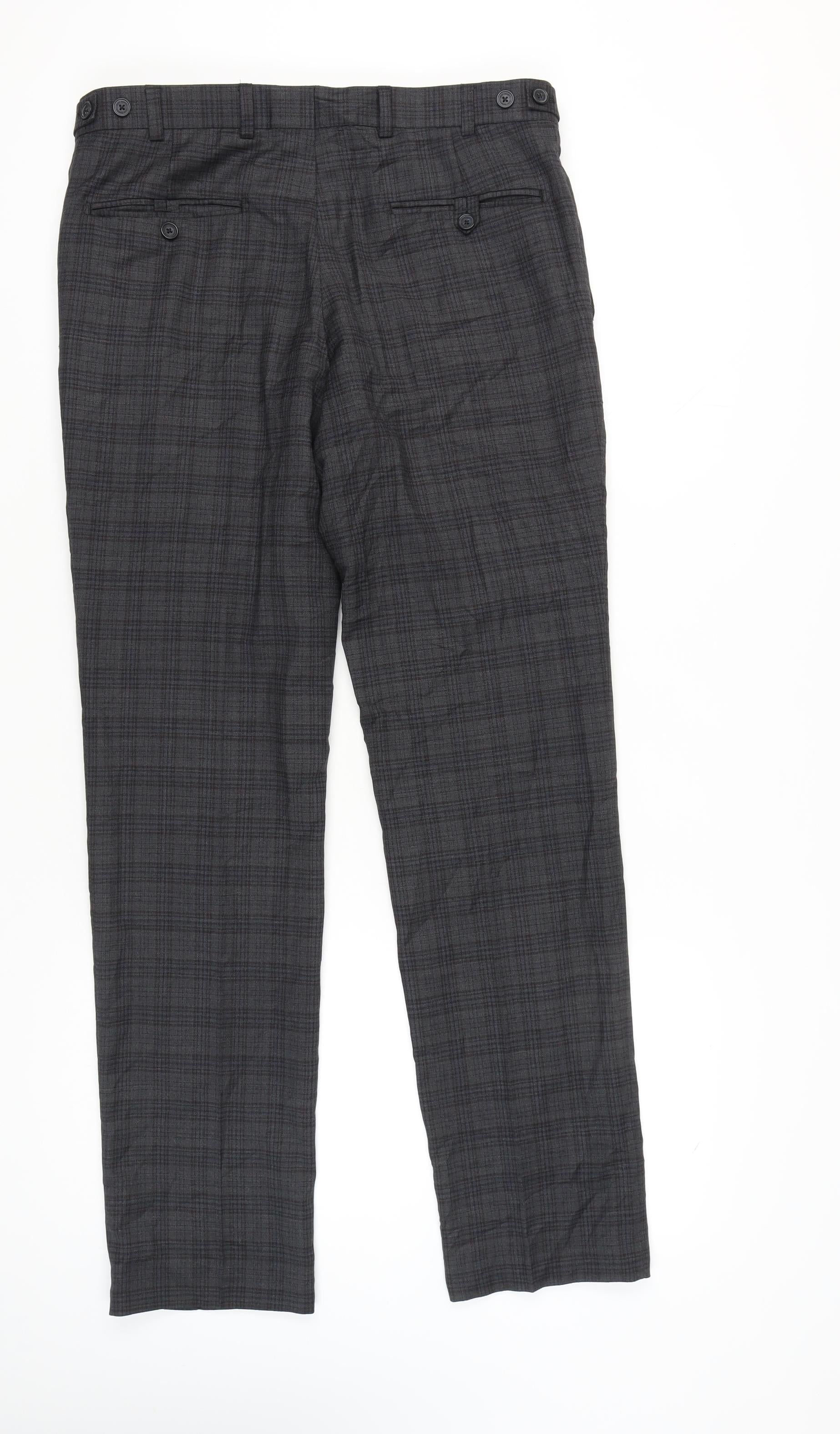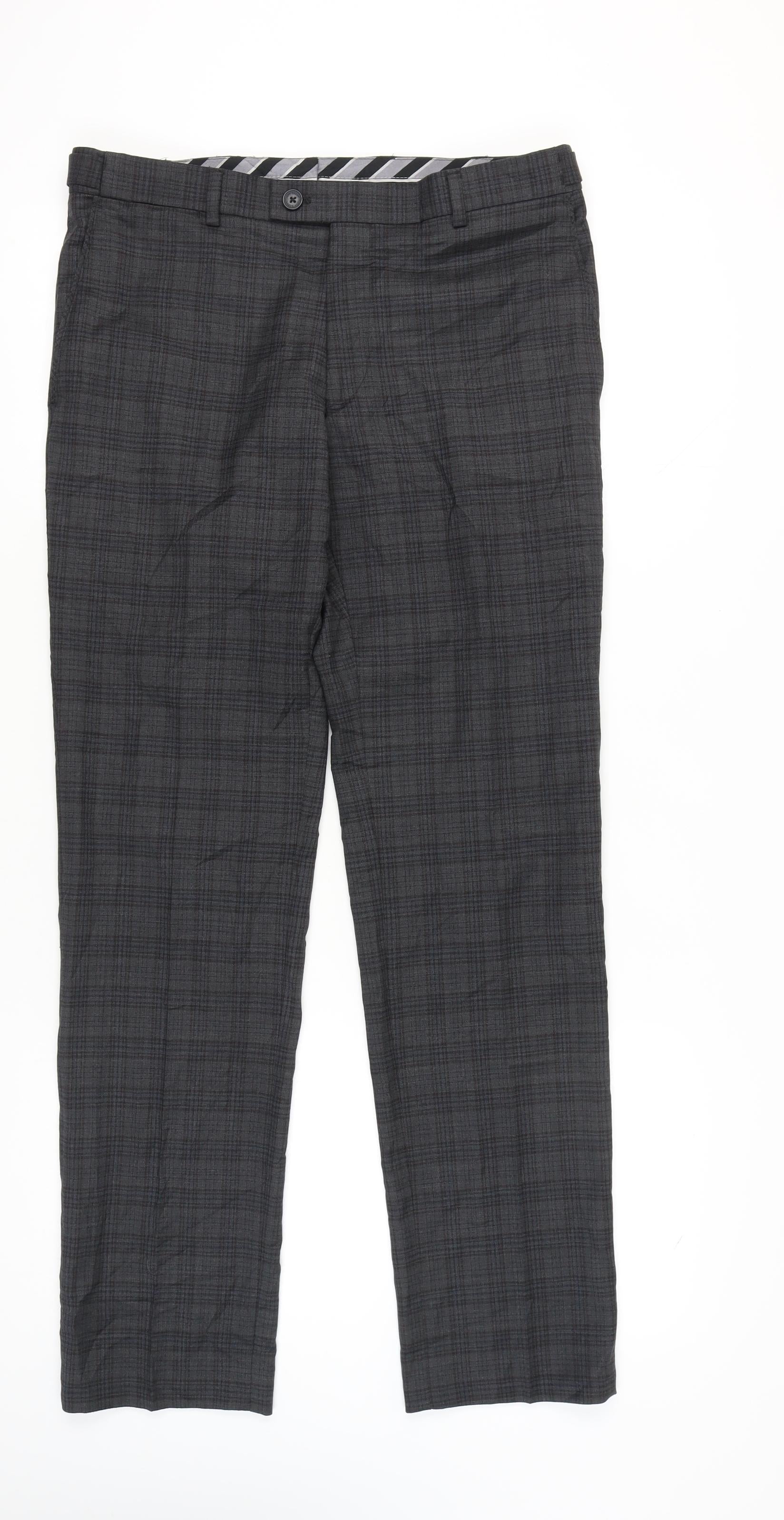 Jeff Banks Men's Grey Check Dress Trousers 34L Wool Blend Straight Fit