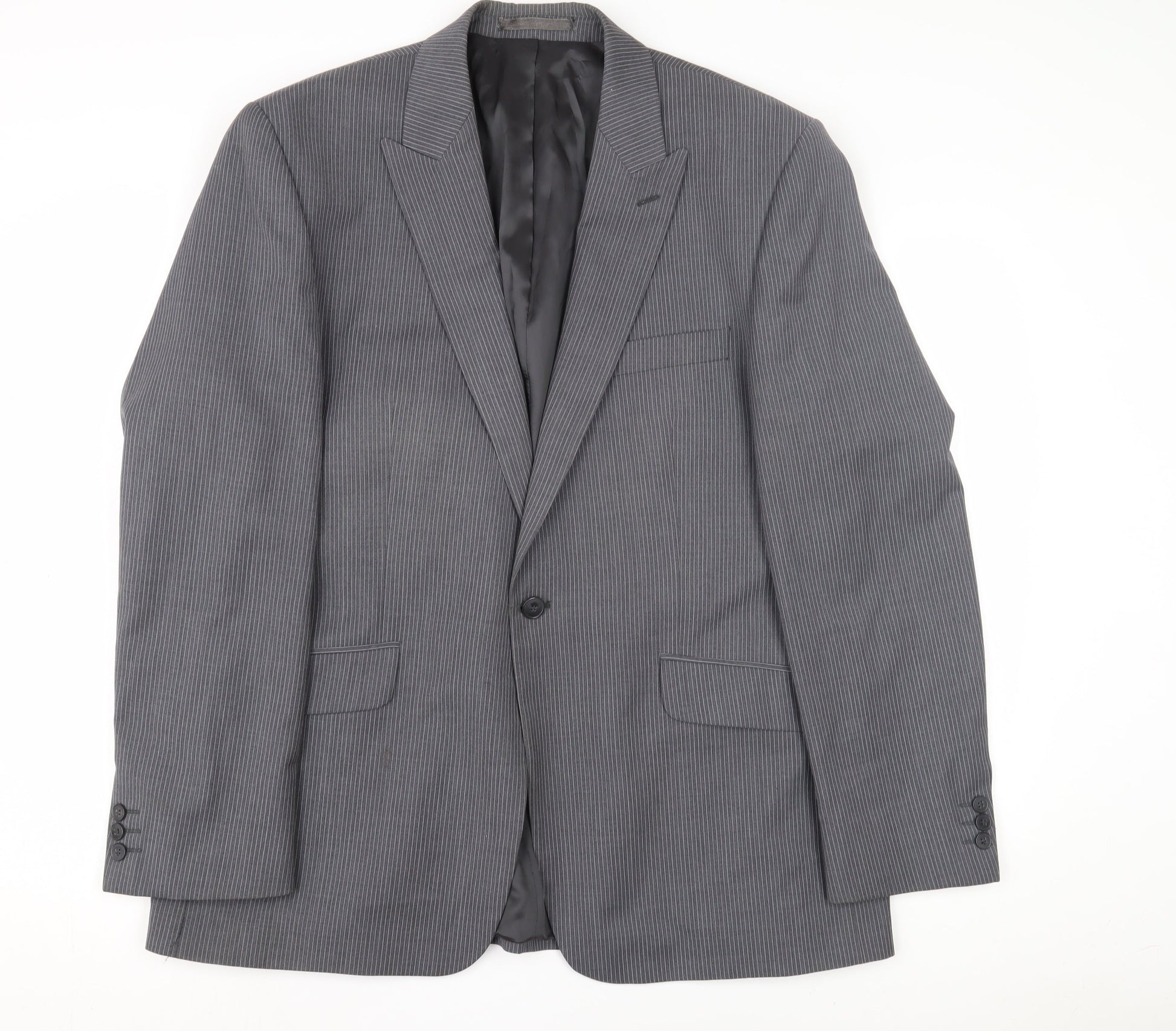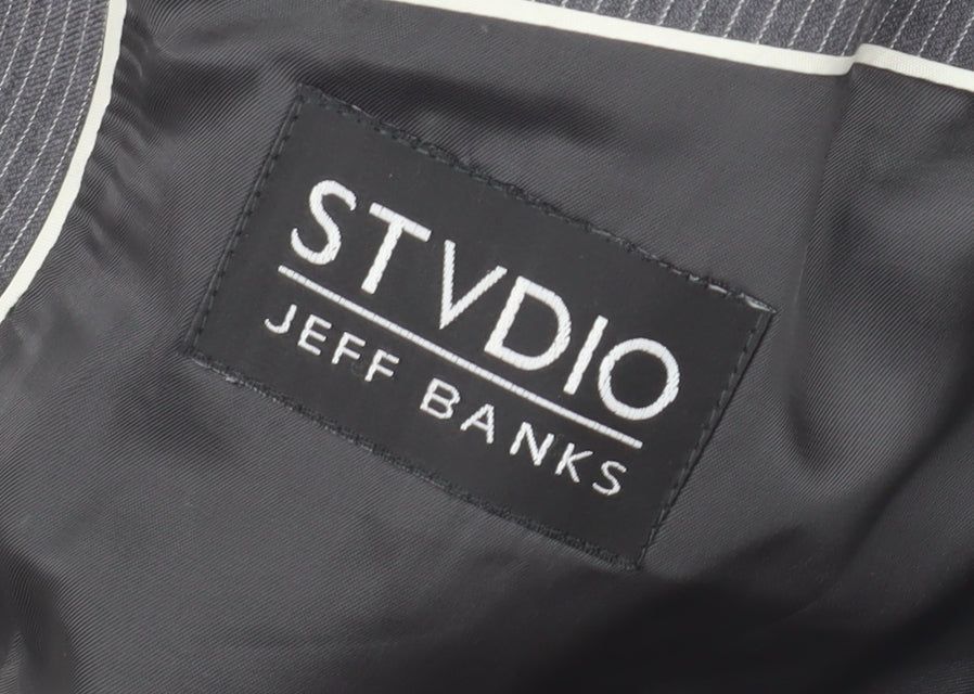 Jeff Banks Men's Grey Striped Blazer - 44 Regular Fit