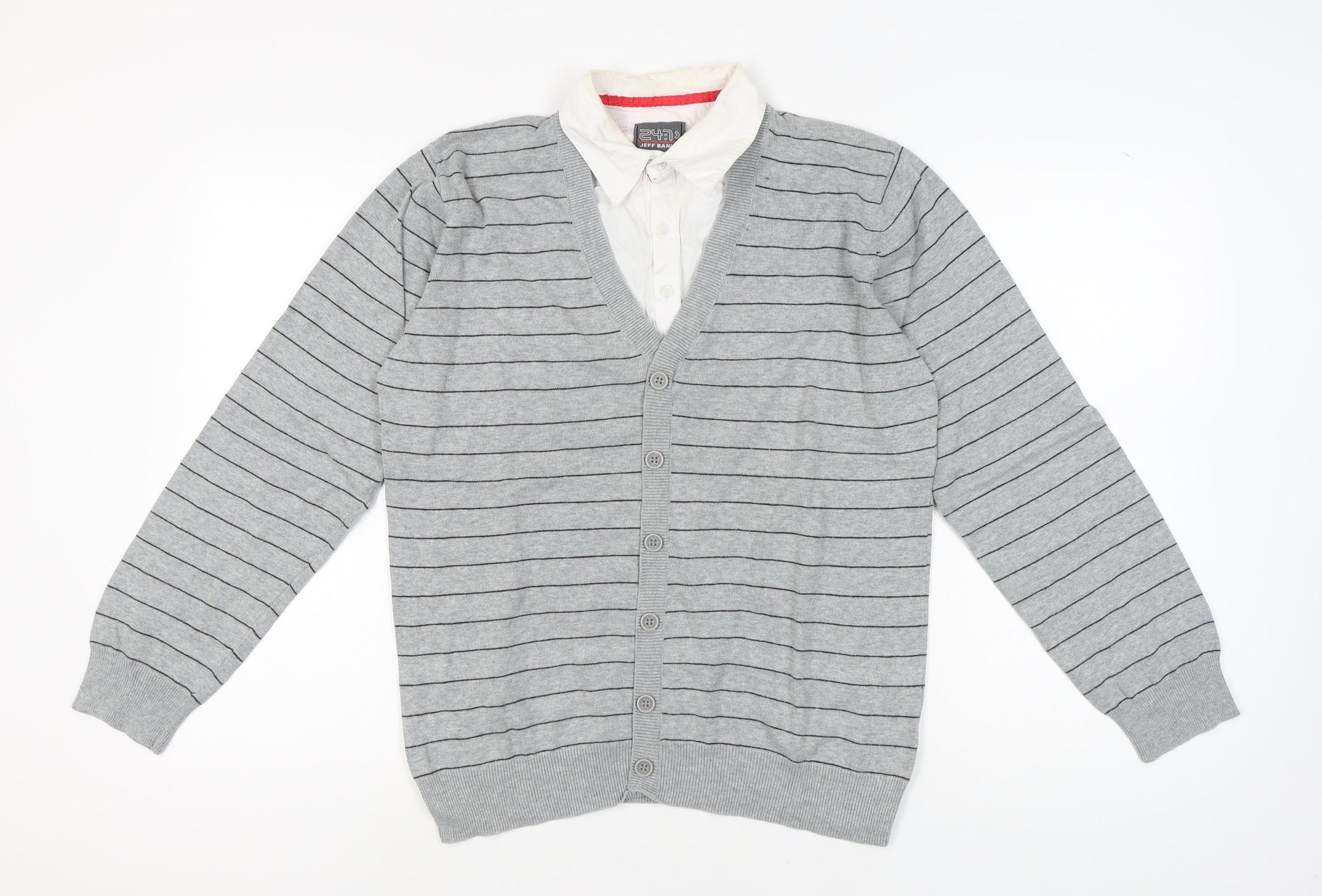 Jeff Banks Men's Grey Striped Cardigan M