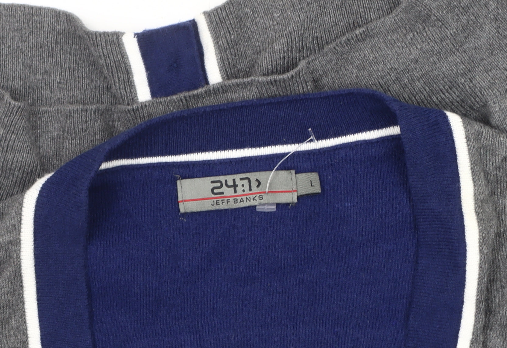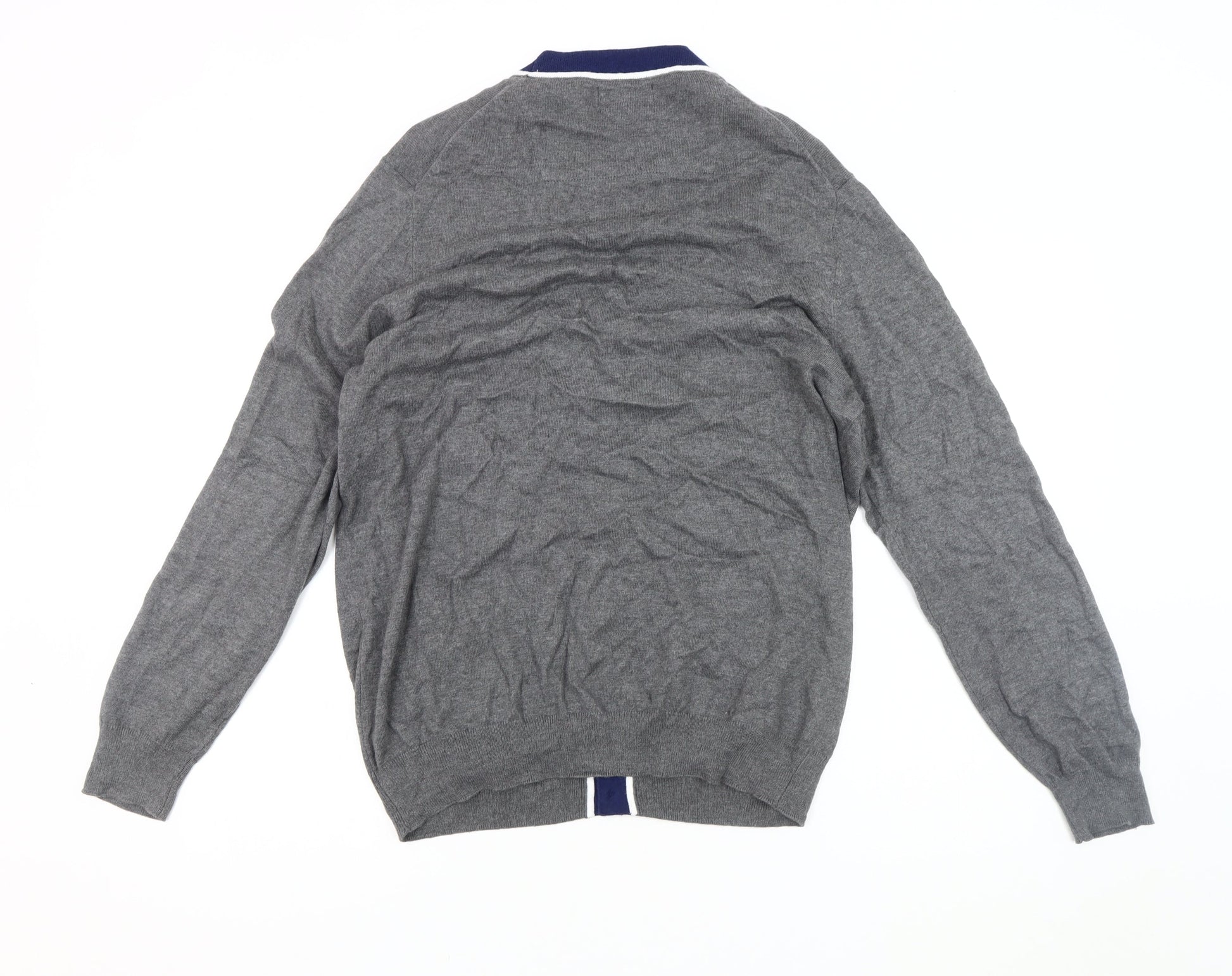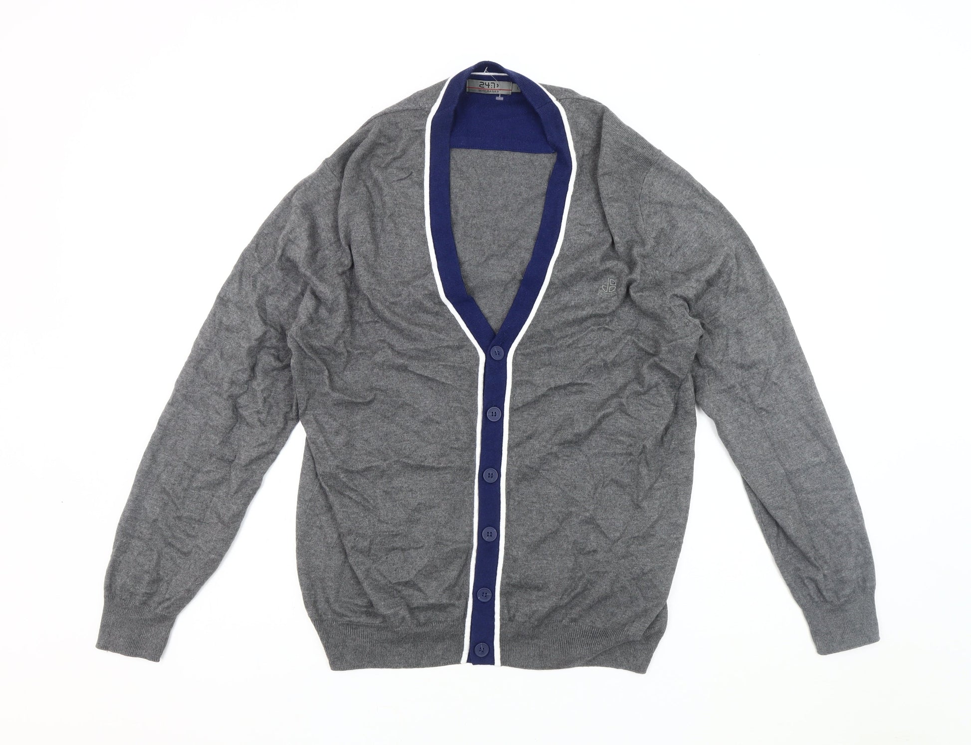 Jeff Banks Men's Grey V-Neck Cardigan, L, Classic Style