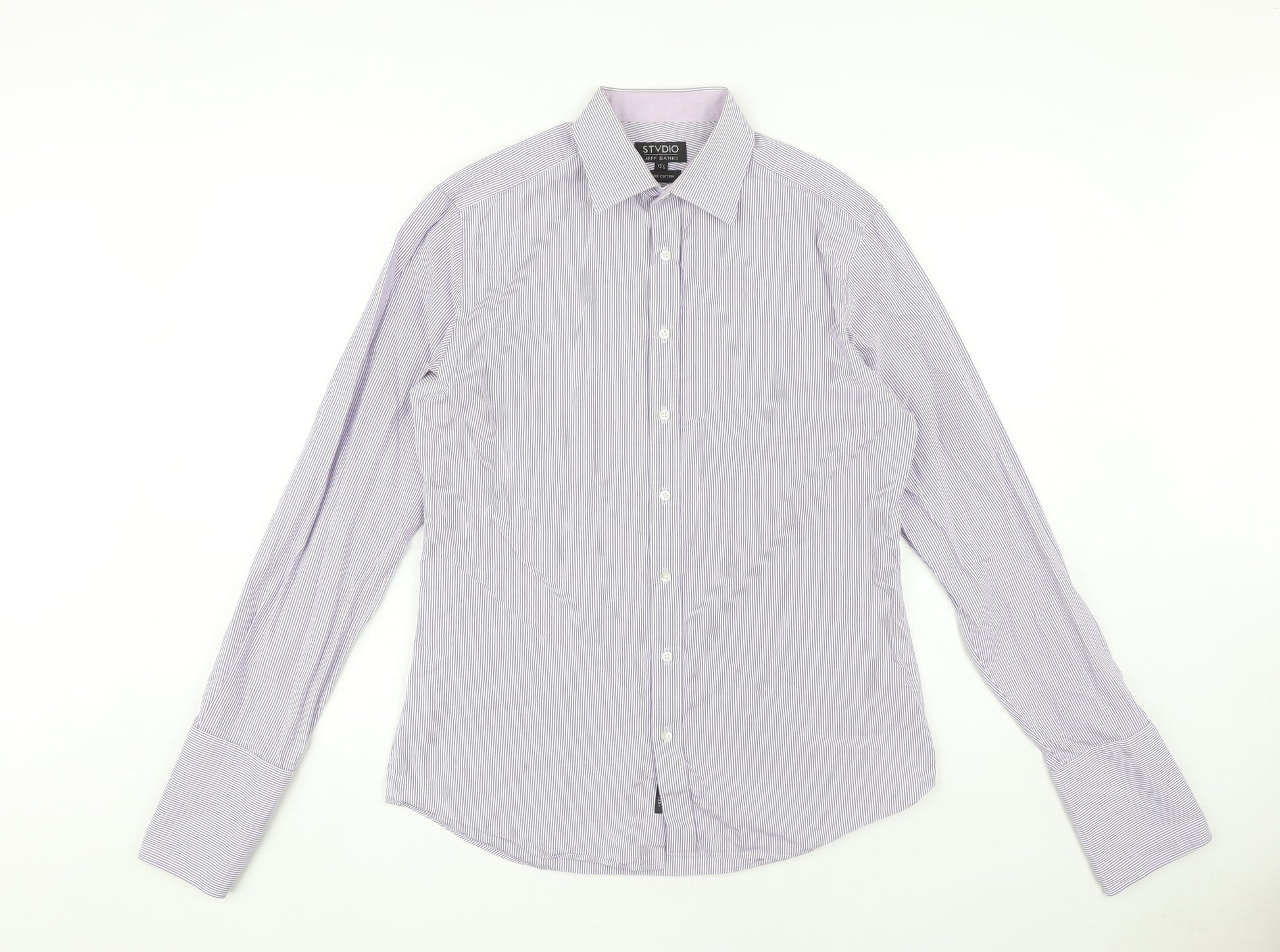 Jeff Banks Men's Purple Striped Formal Dress Shirt 15.5