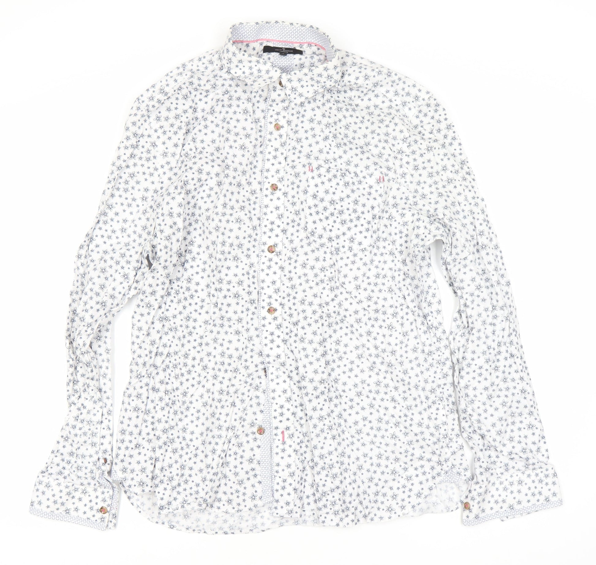 Jeff Banks Men's White Floral Dress Shirt L