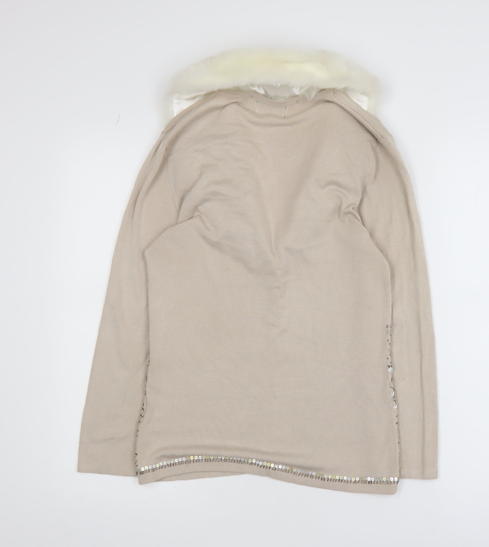 JFW Women’s Beige Faux Fur Collar Embellished Knit Jacket Size S