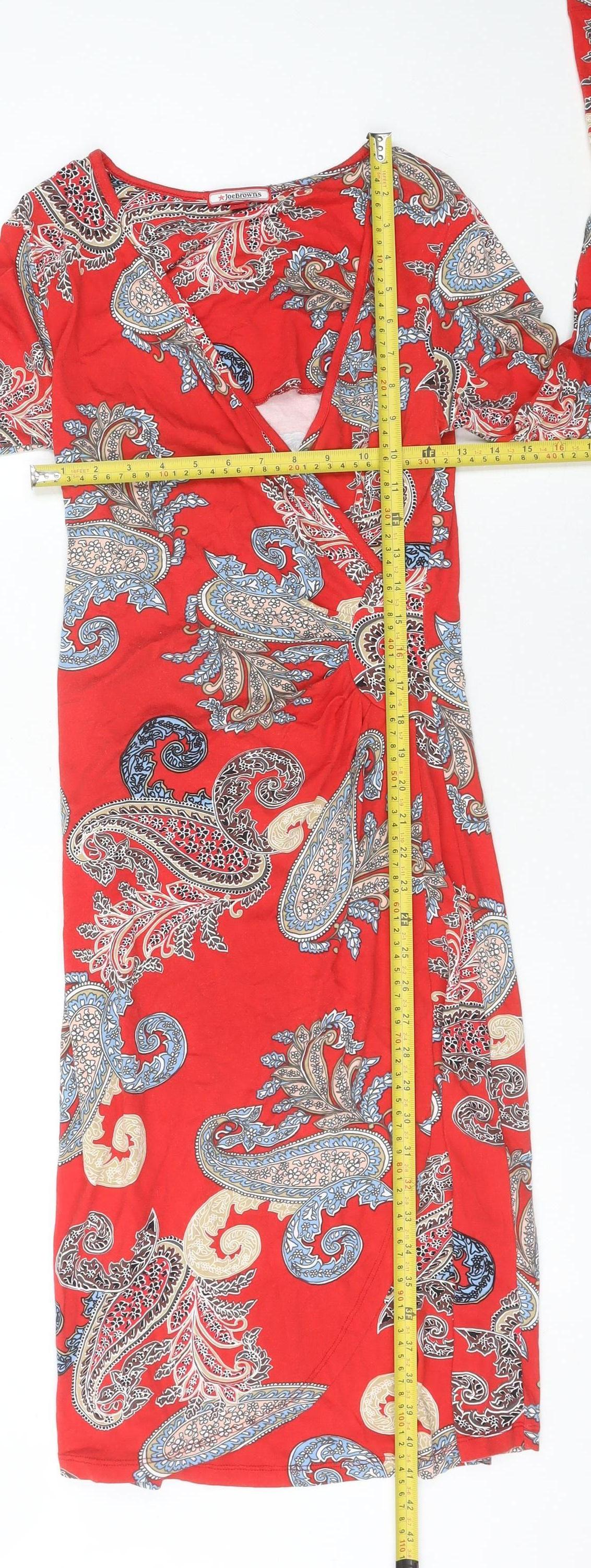 Joe Browns Women’s Red Paisley Bodycon Dress Size 8 V-Neck Boho Knee Length