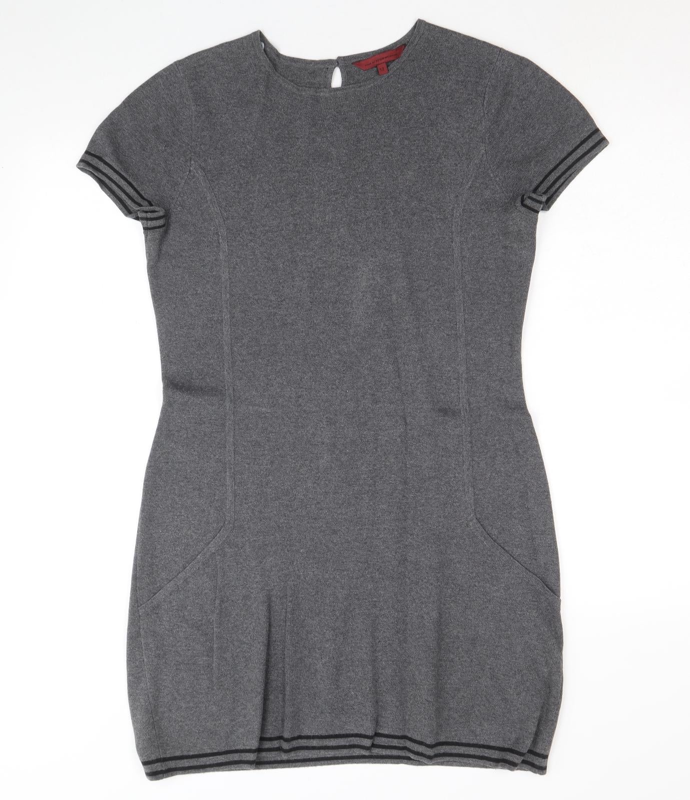 John Richmond Womens Grey Polyester A-Line Size 12 Round Neck Button