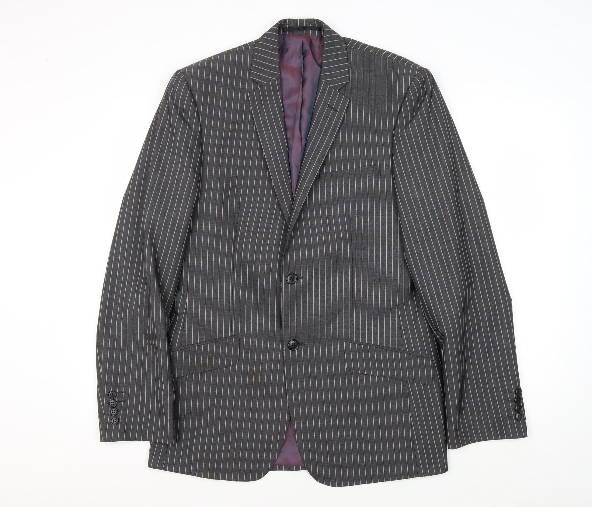 Jones Men's Grey Striped Blazer, 40L for Formal Events