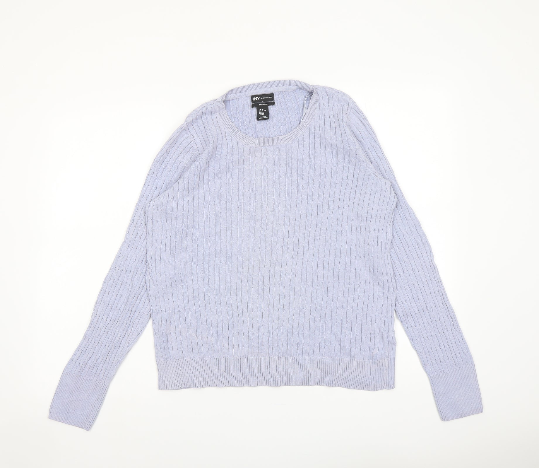 Jones New York Womens Blue Round Neck Cotton Pullover Jumper Size XL