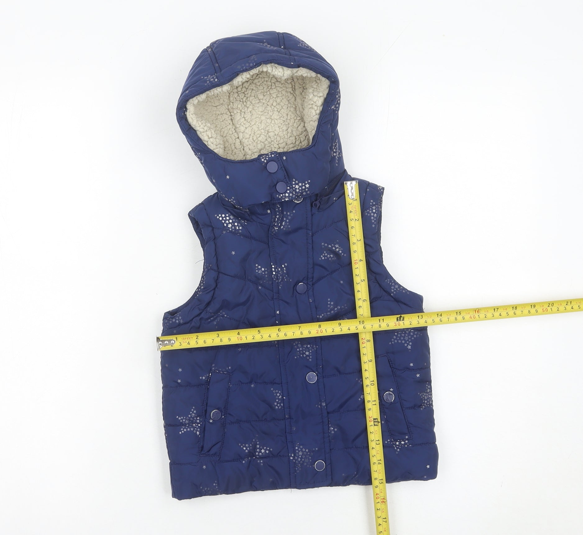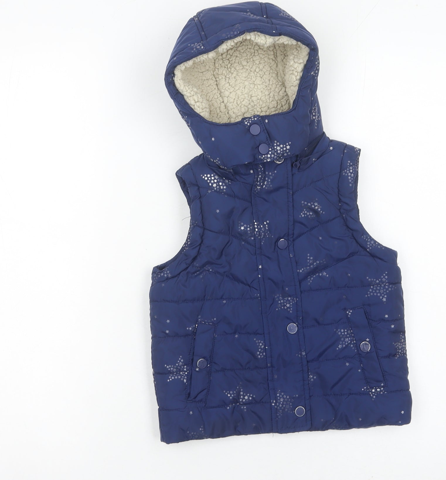 Joules Girls Blue Puffer Waistcoat 2 Years Hooded Star Print Quilted Gilet