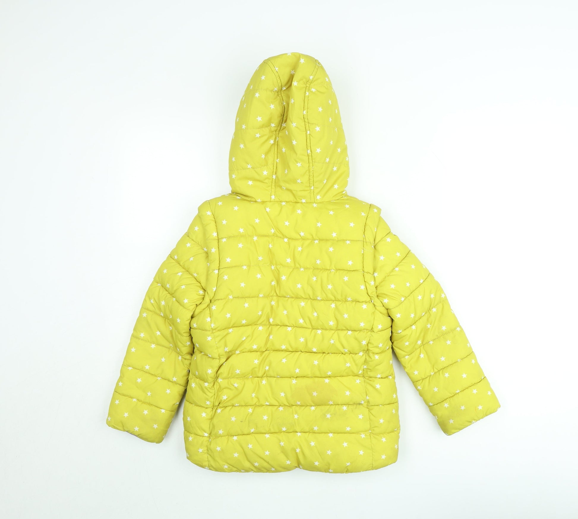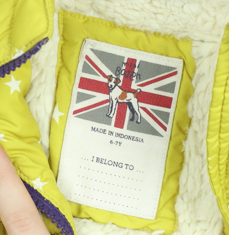 Joules Girls Yellow Star Print Hooded Puffer Jacket 6-7 Years Lined Winter Coat