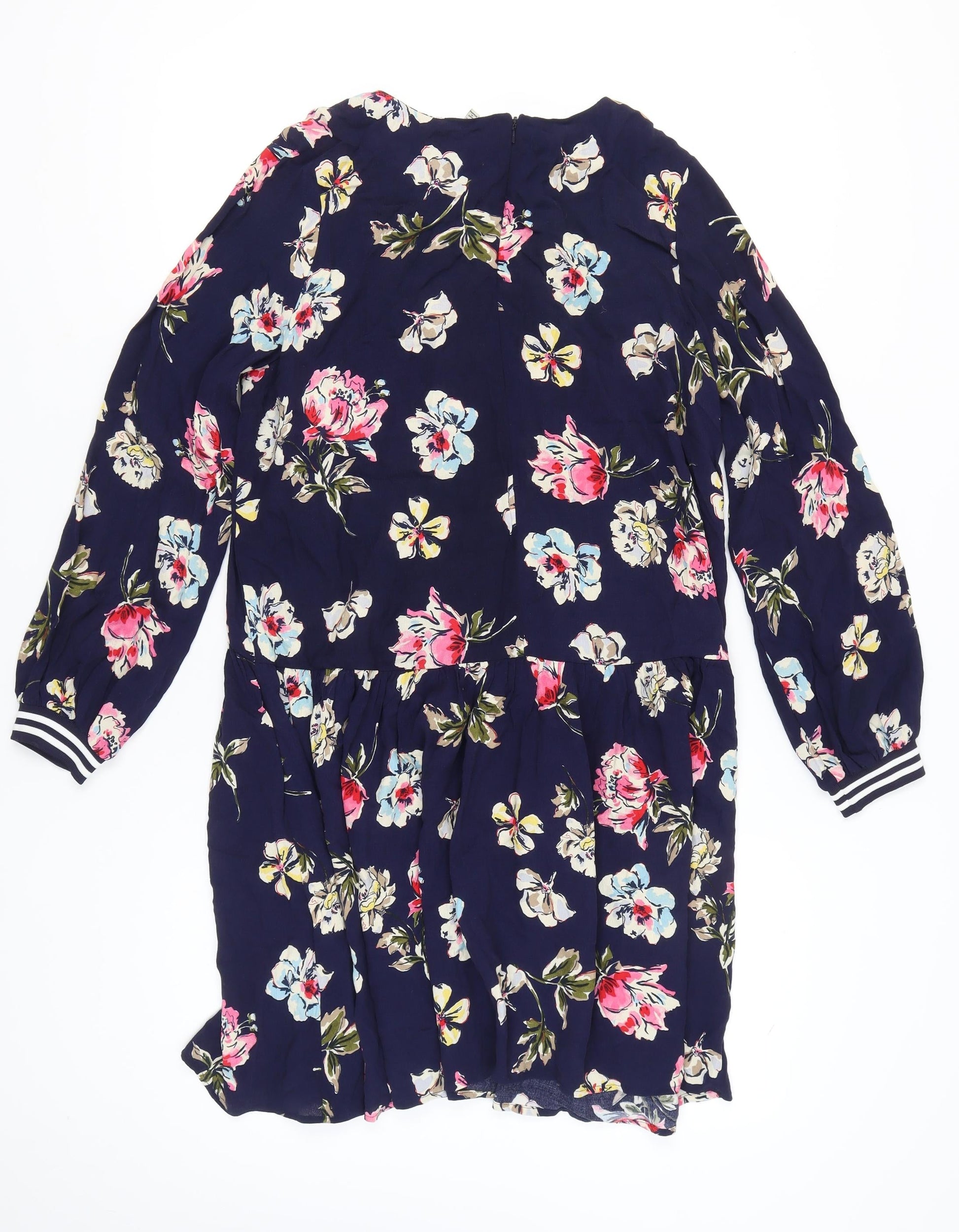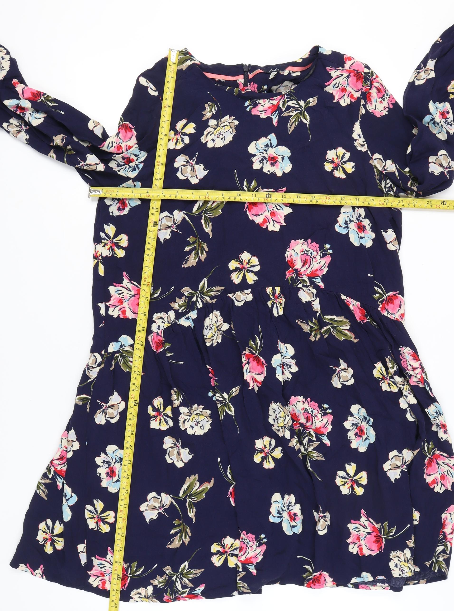 Joules Women Blue Floral A-Line Dress Size 14 Long Sleeve