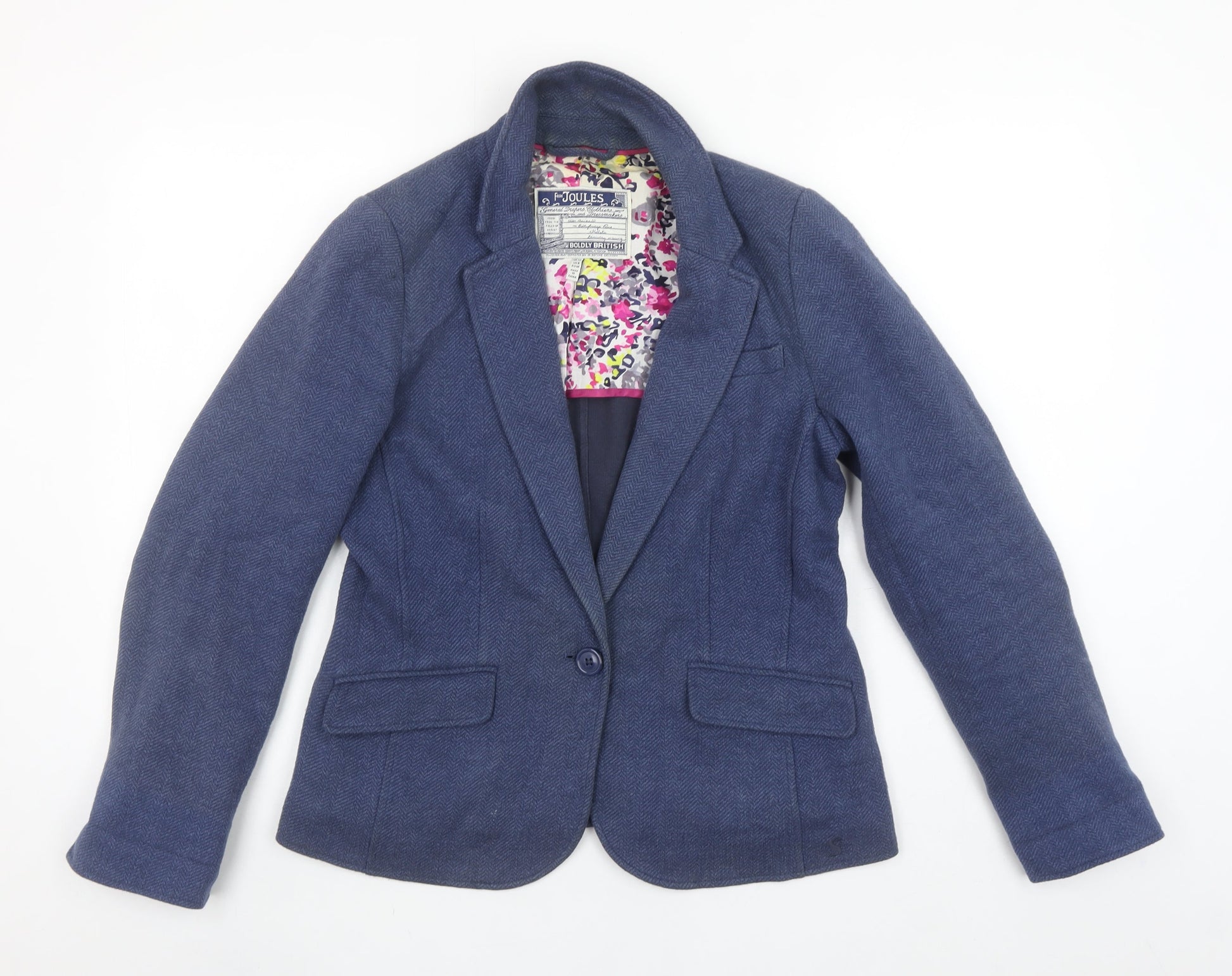 Joules Women Blue Tweed Blazer Jacket UK 12 Single Breasted Cotton Mix