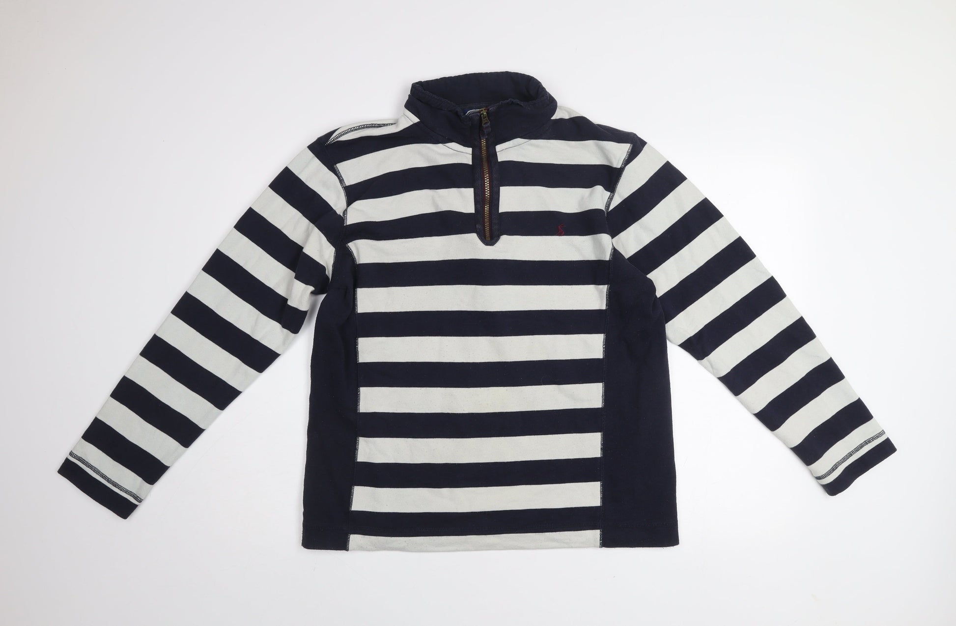 Joules Women Navy & White Striped 1/2 Zip Sweatshirt M Cotton Blend
