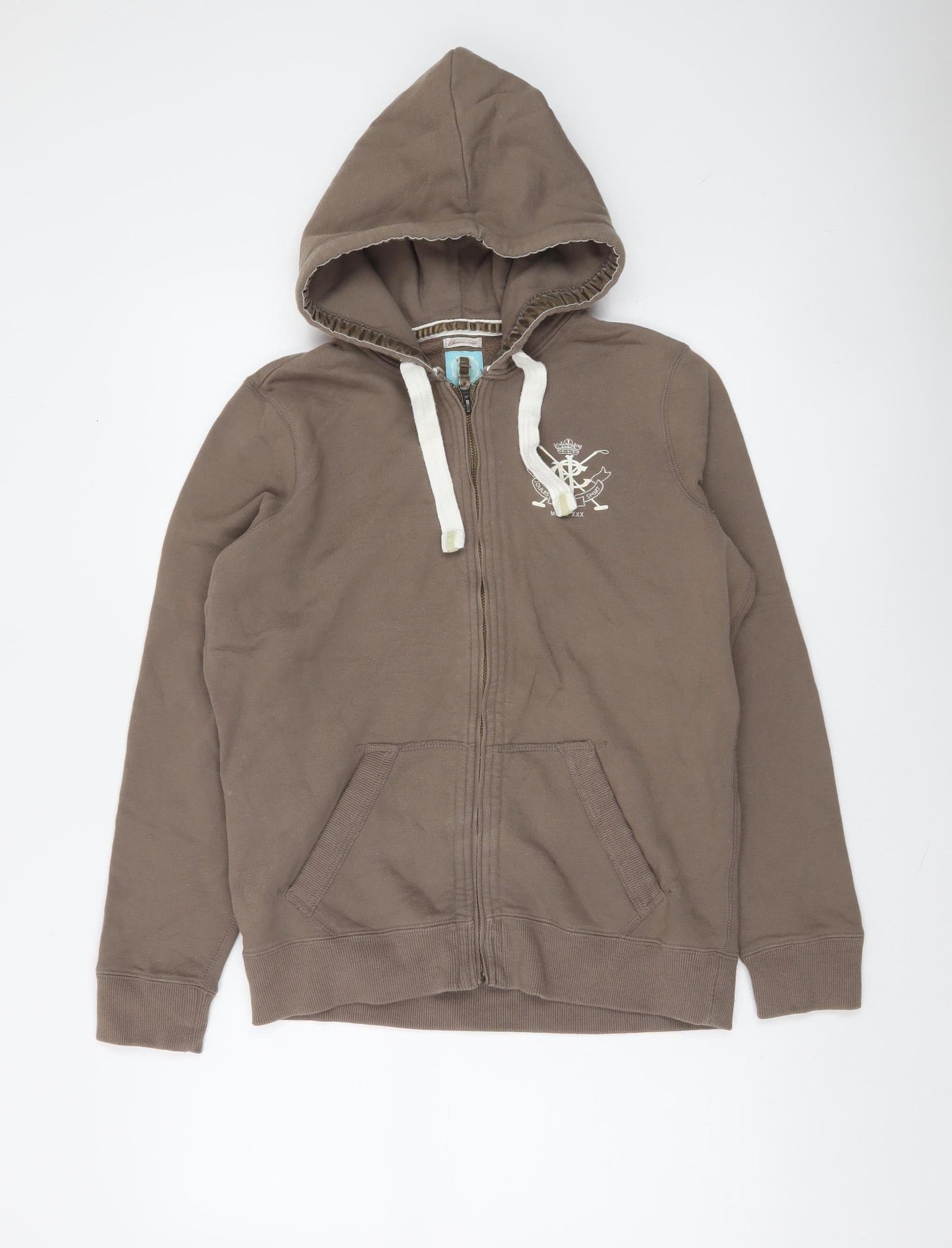 Joules Women’s Brown Full Zip Hoodie Size 12 Classic Fit Polo Print