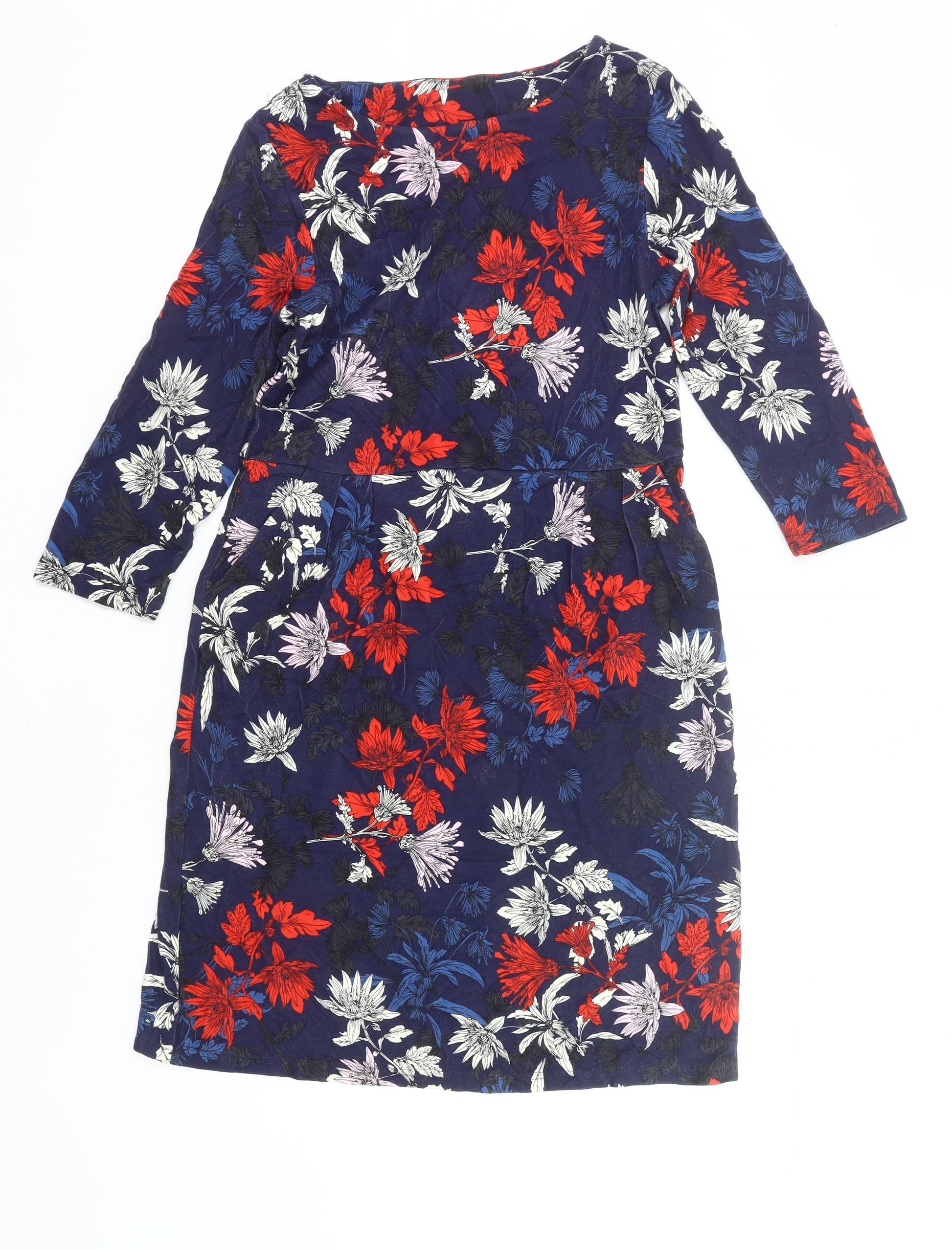 Joules Women’s Multicoloured Floral Shift Dress UK 12 Knee Length 3/4 Sleeve