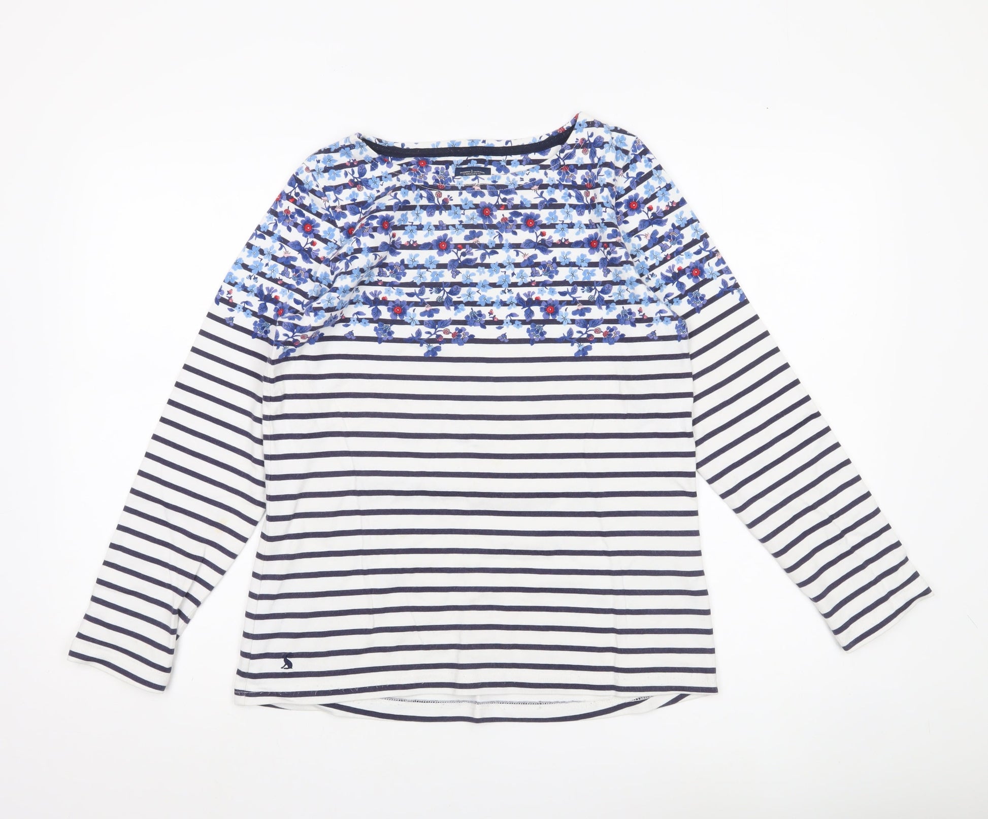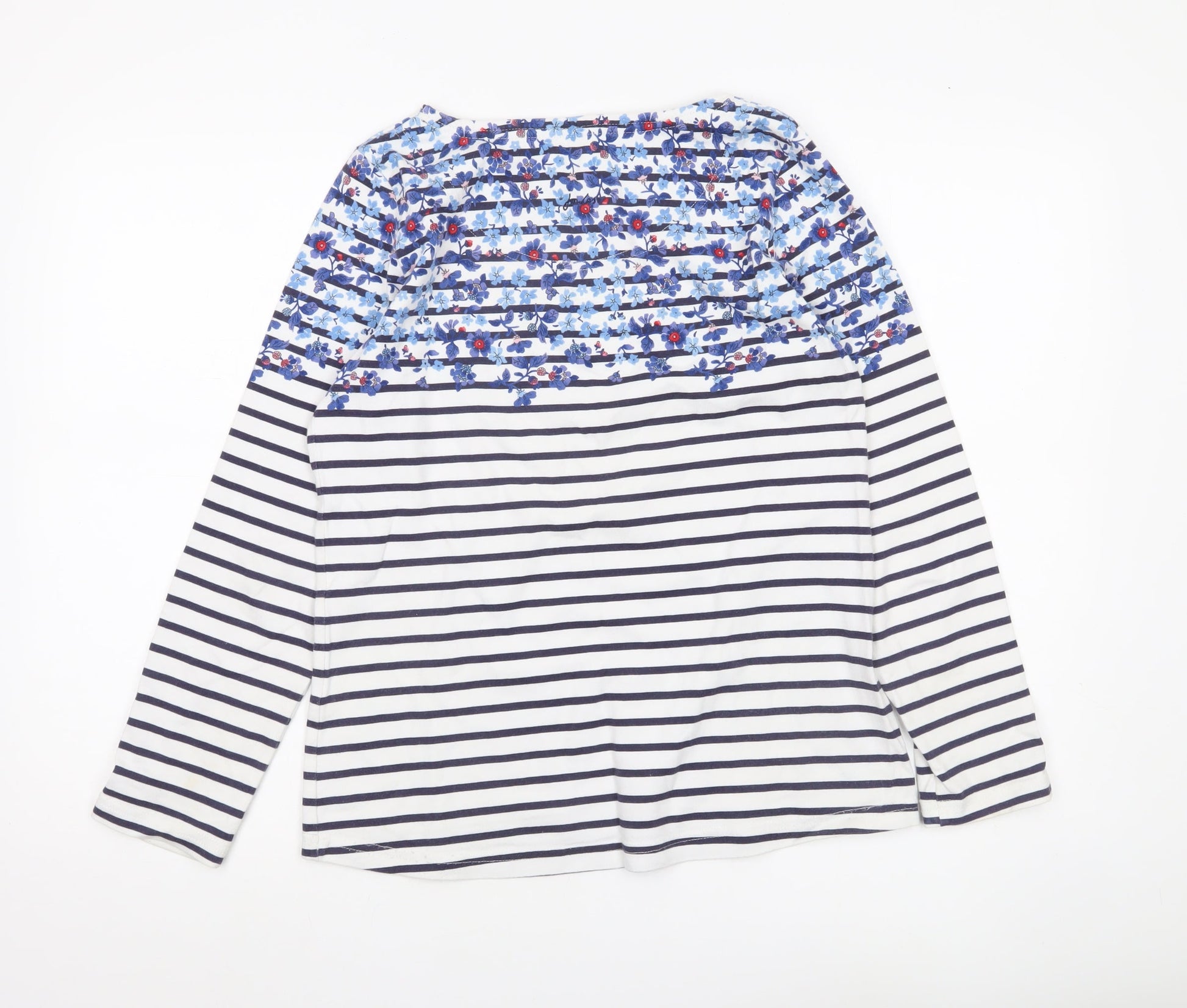 Joules Women’s Multicoloured Striped Floral Cotton Long Sleeve T-Shirt UK 10