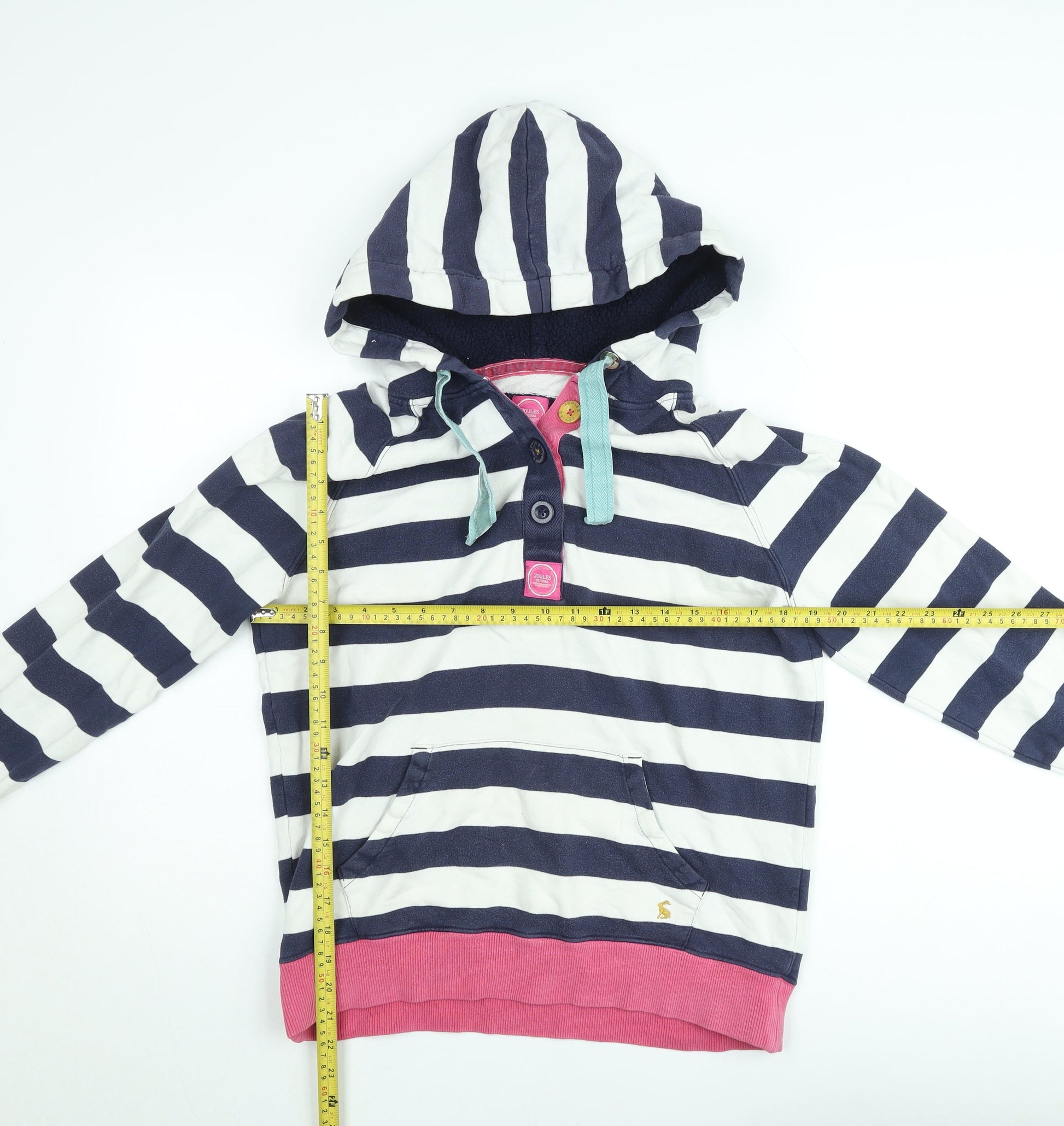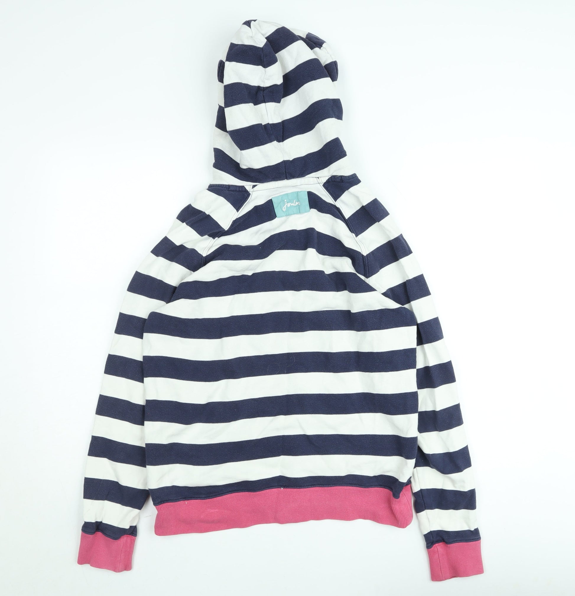 Joules Women’s Navy Striped Henley Hoodie Size 12 Cotton Blend
