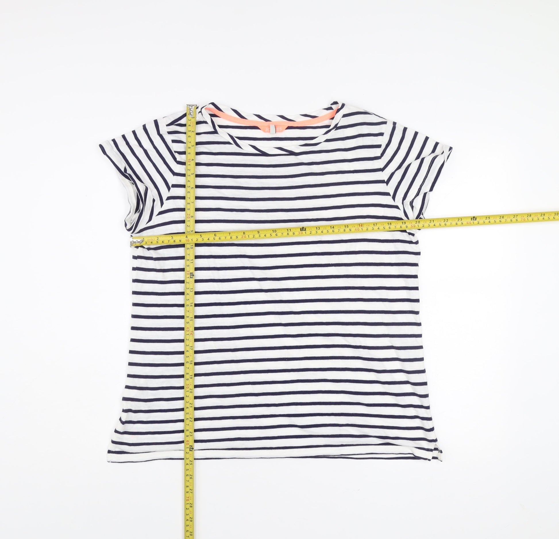 Joules Women White Navy Striped Cotton T-Shirt UK 16 Casual
