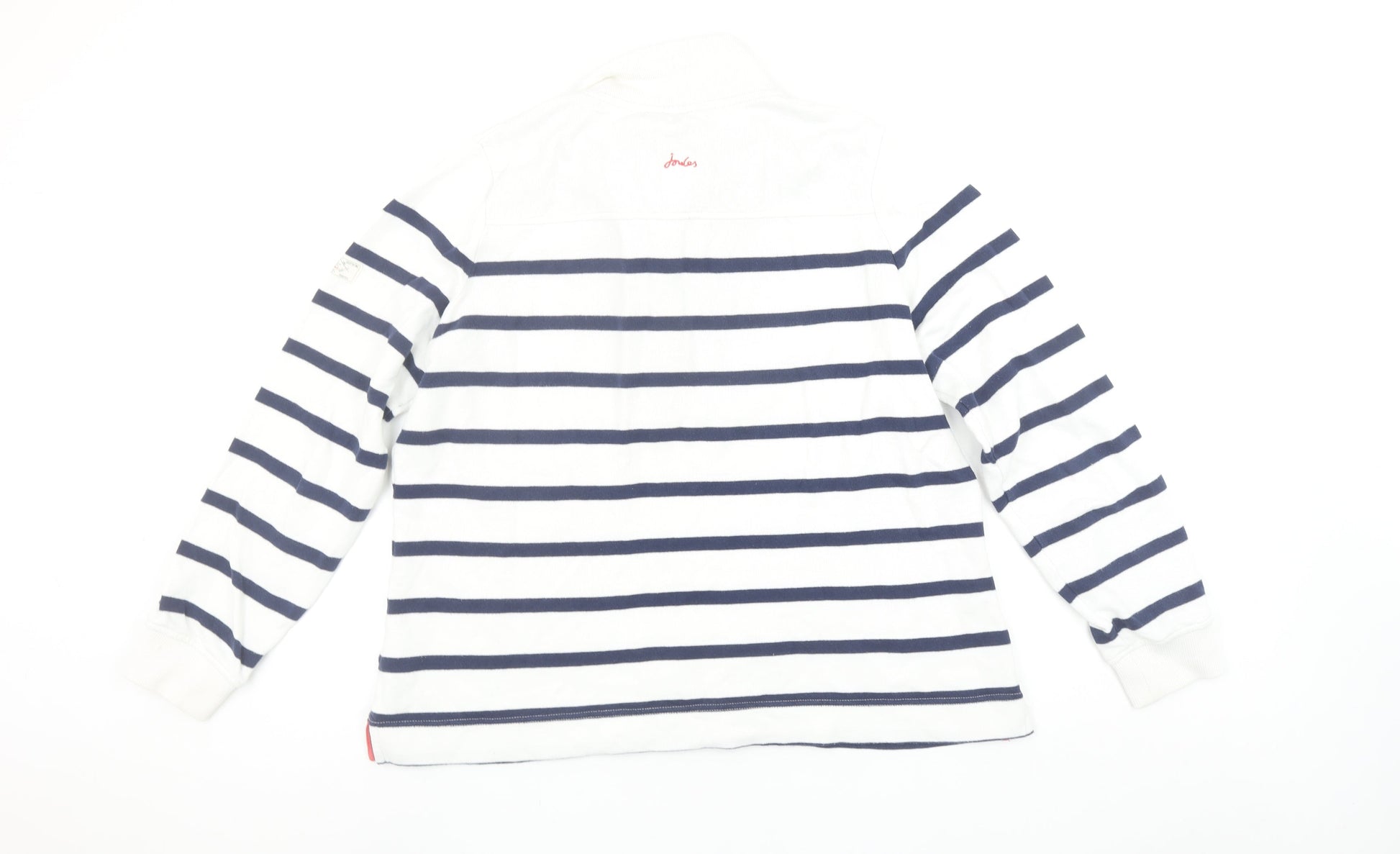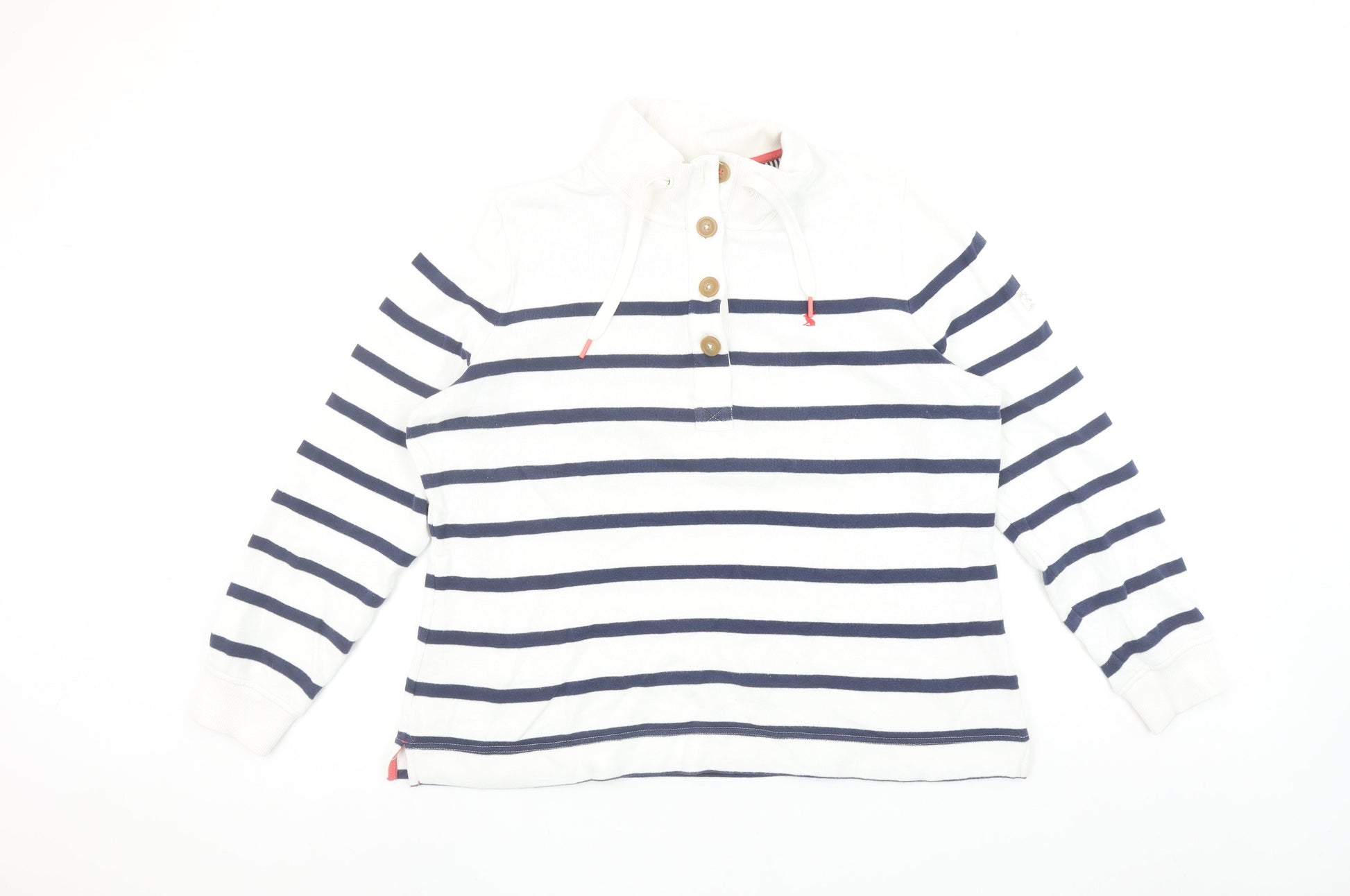 Joules Women White Navy Striped Henley Sweatshirt UK 16 Cotton Nautical