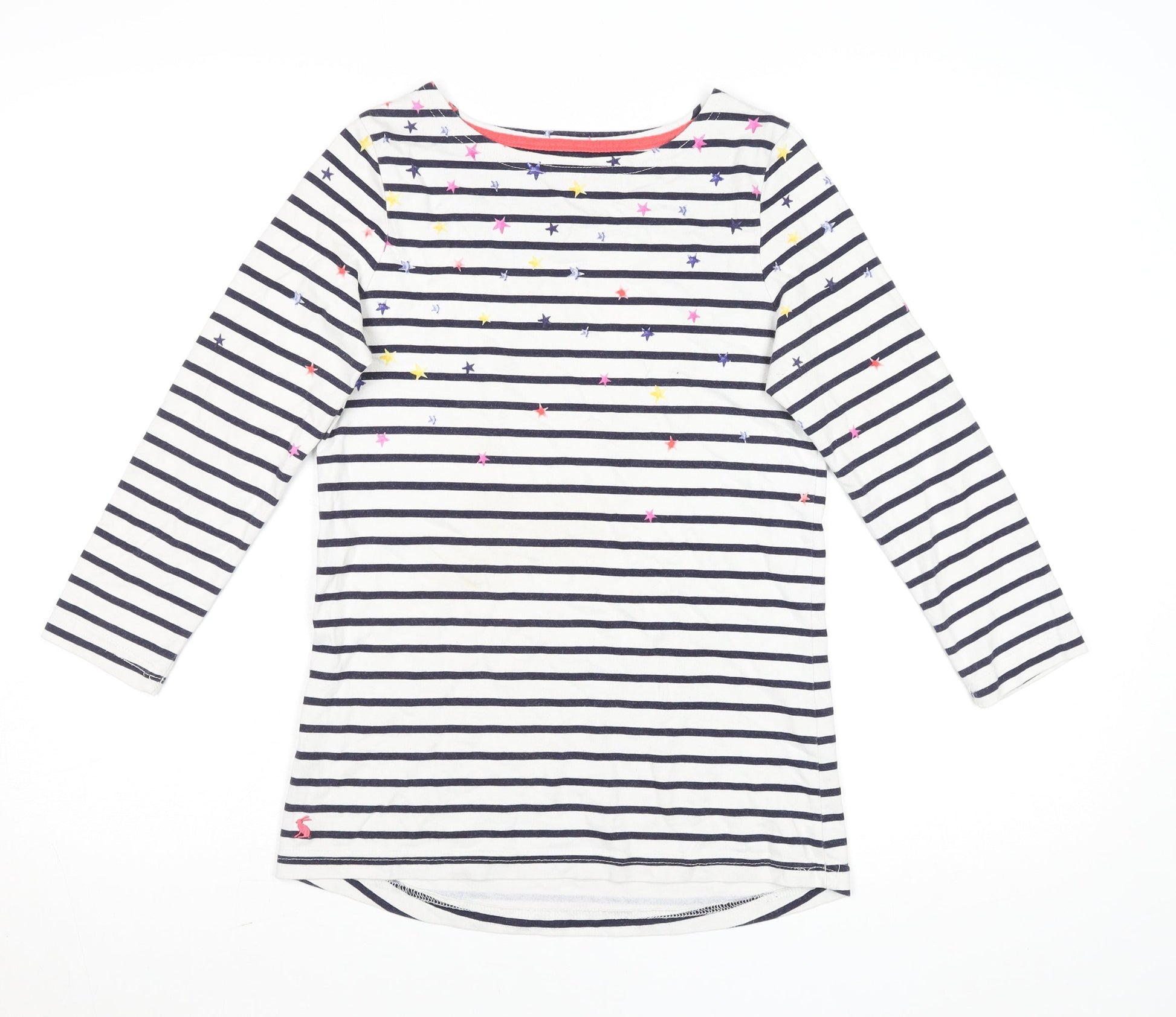 Joules Women White Navy Striped Long Sleeve Cotton T-Shirt UK 8