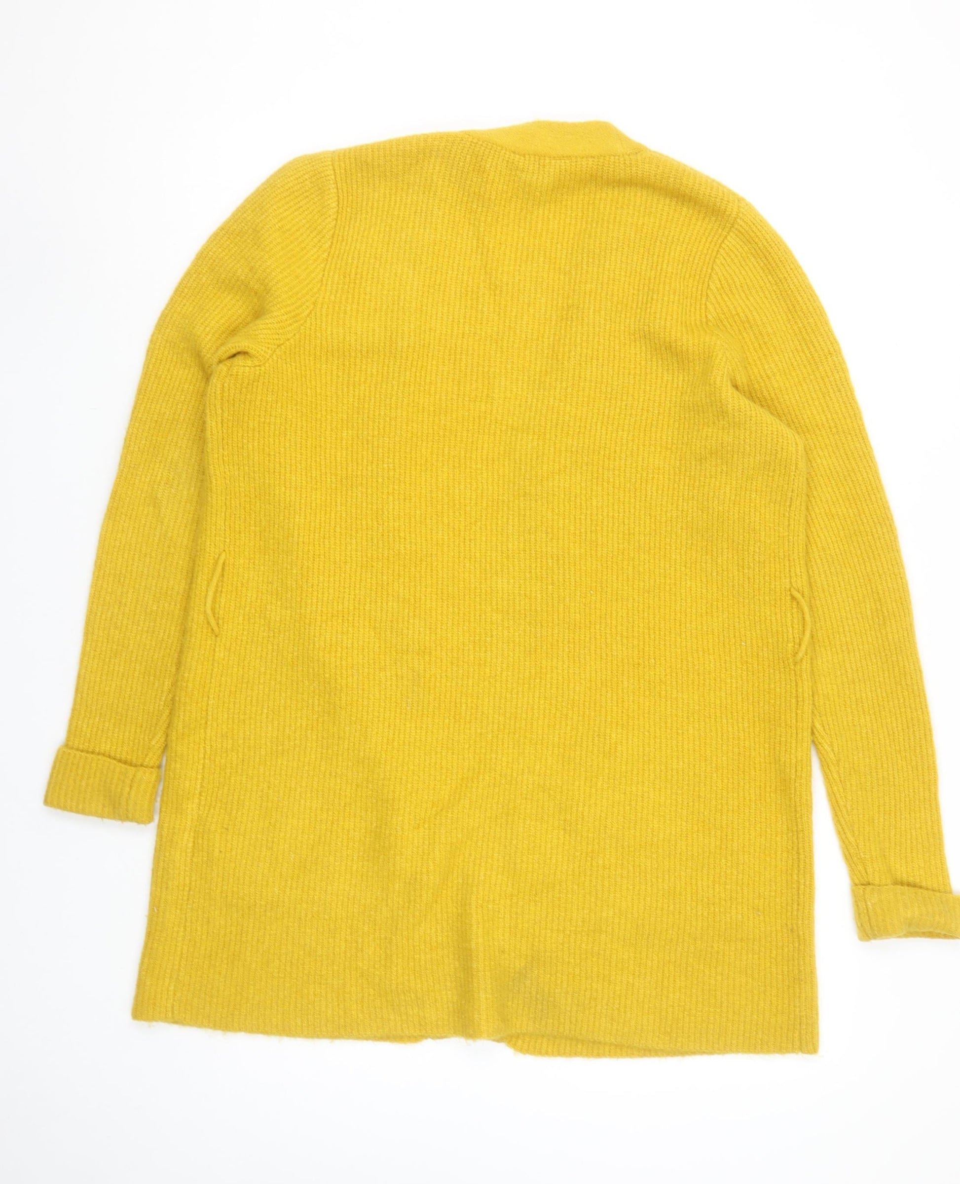Joules Women Yellow Ribbed-Knit Long Sleeve Open Cardigan Size S