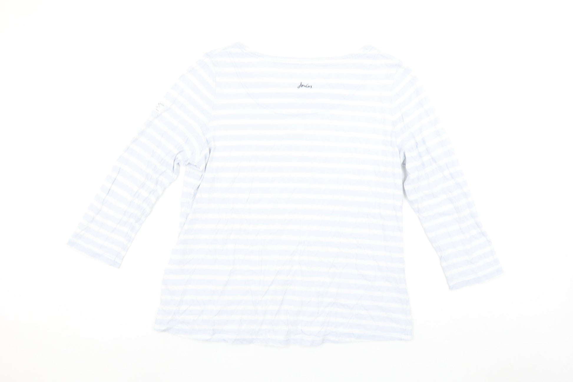 Joules Women's Blue Striped Boat Neck 3/4 Sleeve Cotton T-Shirt Size 16
