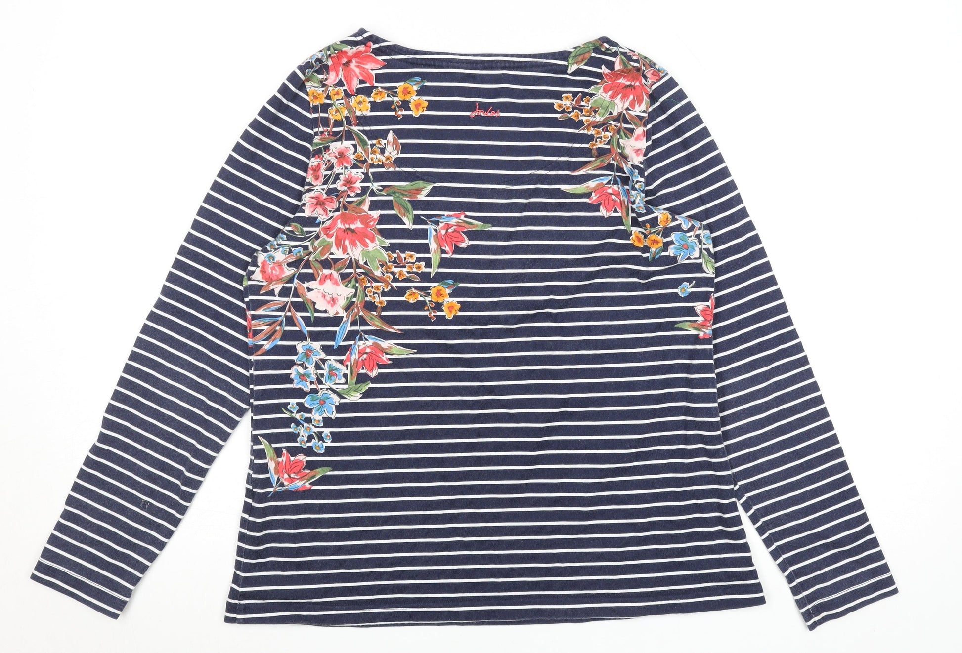 Joules Womens Blue Striped Floral Cotton Long Sleeve T-Shirt Size 14