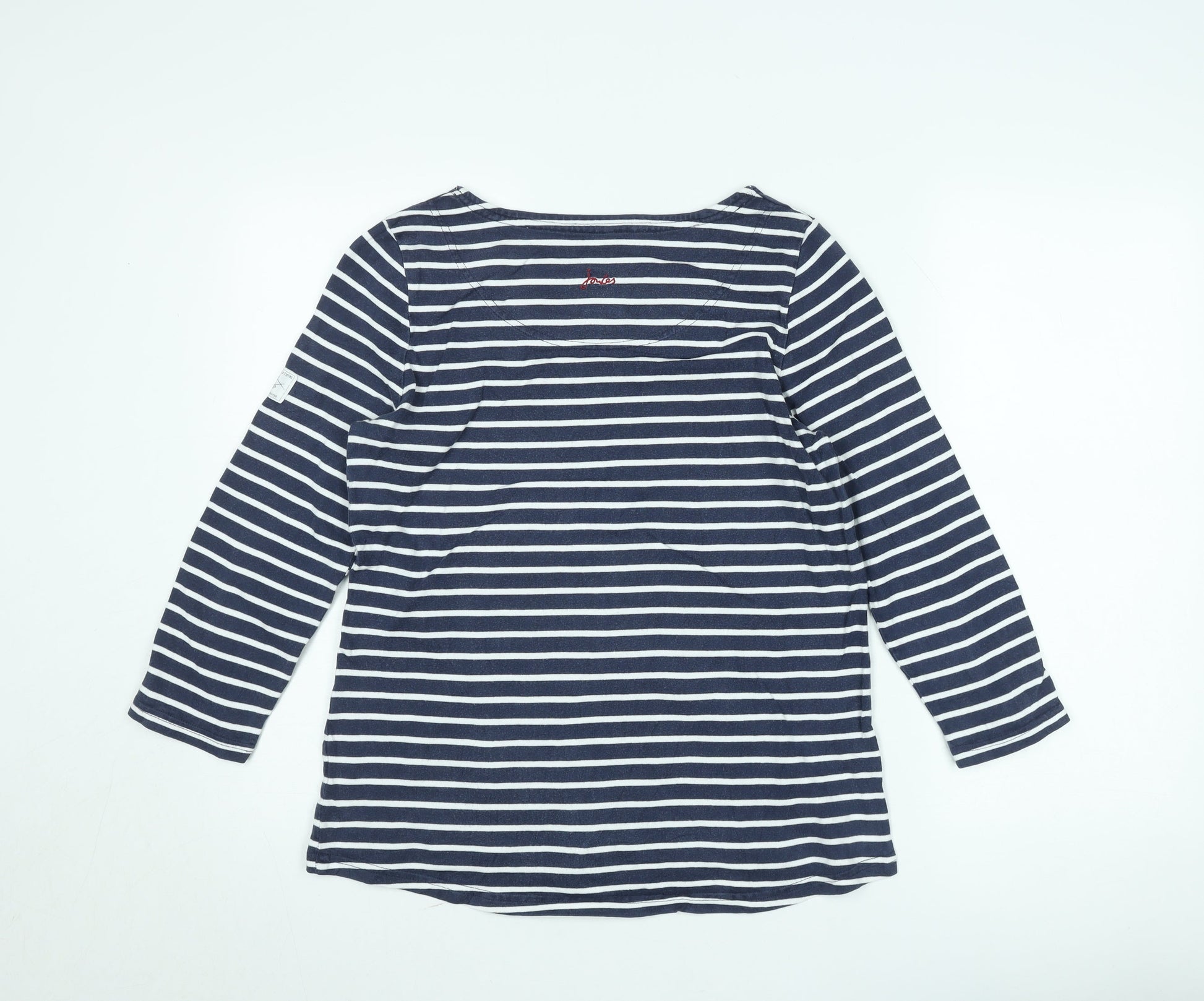 Joules Women's Blue Striped Long Sleeve Boat Neck Cotton T-Shirt Size 12