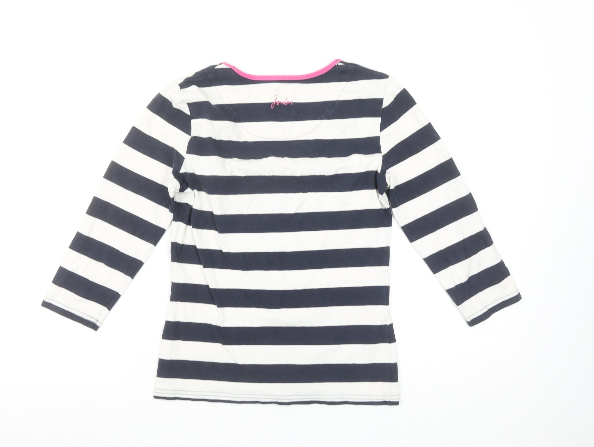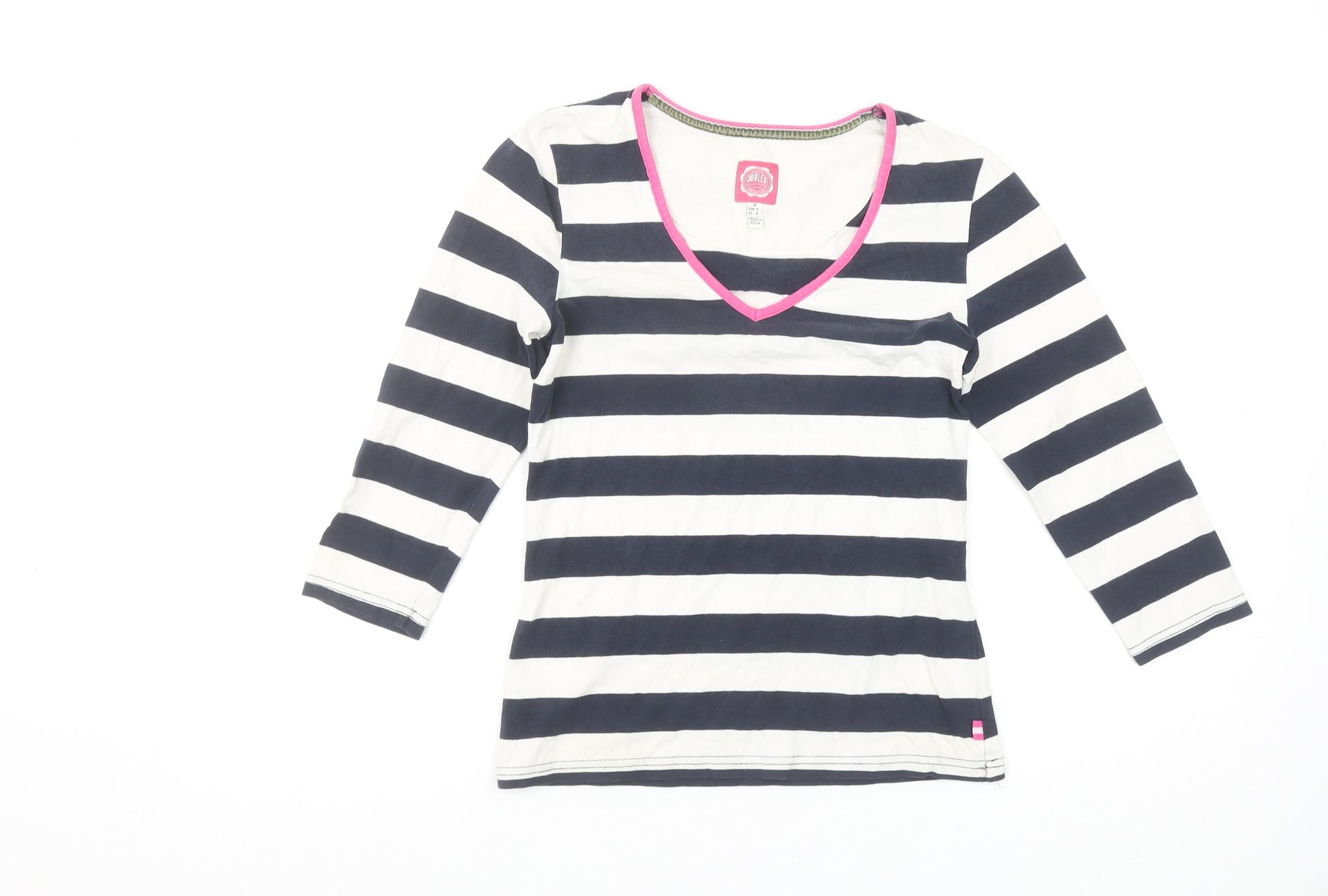 Joules Womens Blue Striped V-Neck 3/4 Sleeve Cotton T-Shirt Size 10