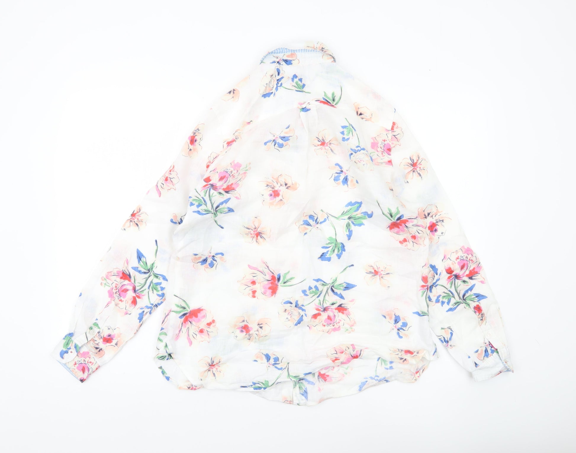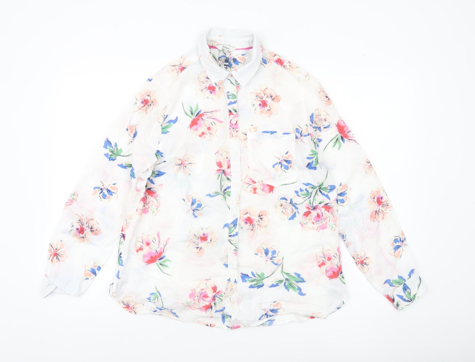 Joules Womens Floral Button-Up Shirt White Multicoloured UK 10