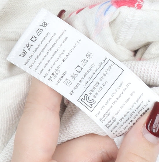 Joules Women's Ivory Floral Pullover Jumper UK 16 Crew Neck Cotton Blend