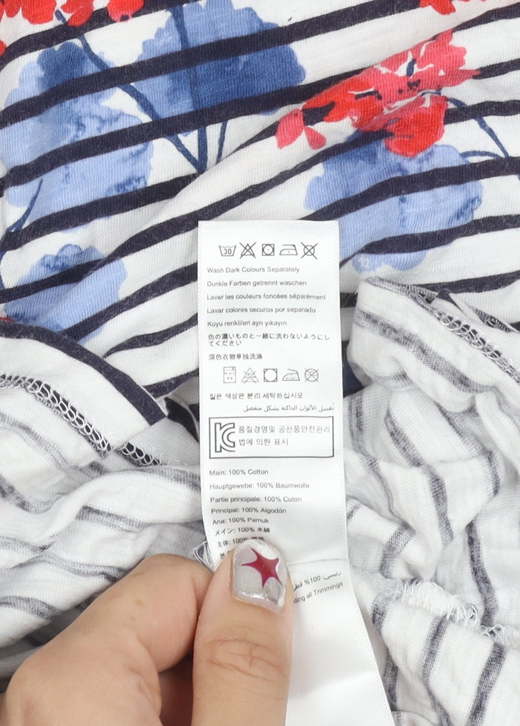 Joules Womens Multicoloured Floral Stripe Cotton T-Shirt UK 18