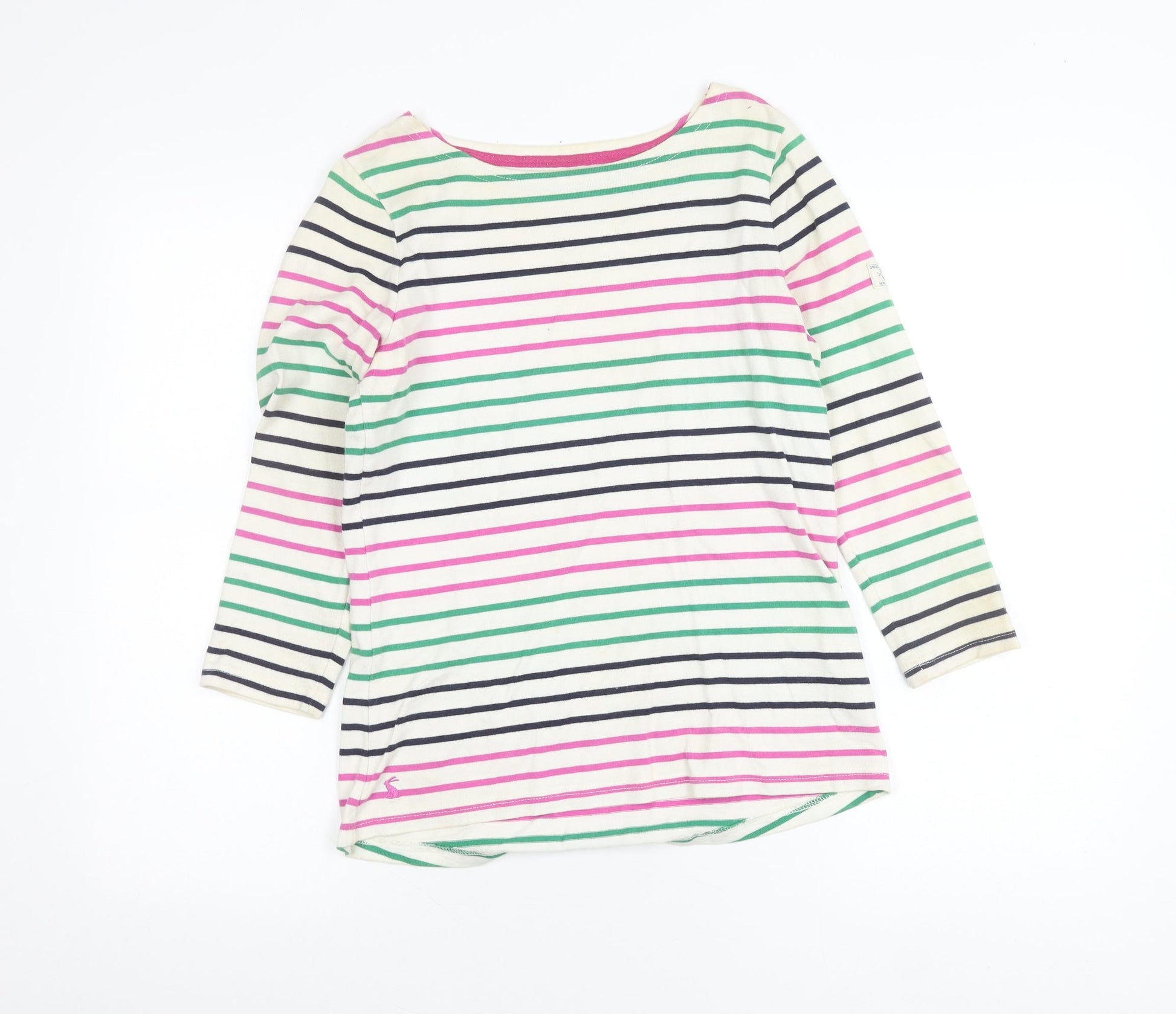 Joules Womens Multicoloured Stripe Cotton 3/4 Sleeve Boat Neck T-Shirt Size 8