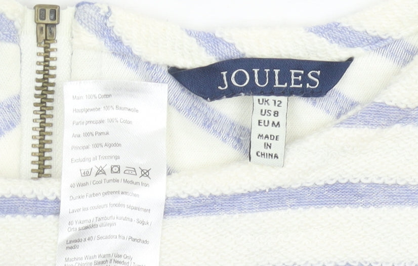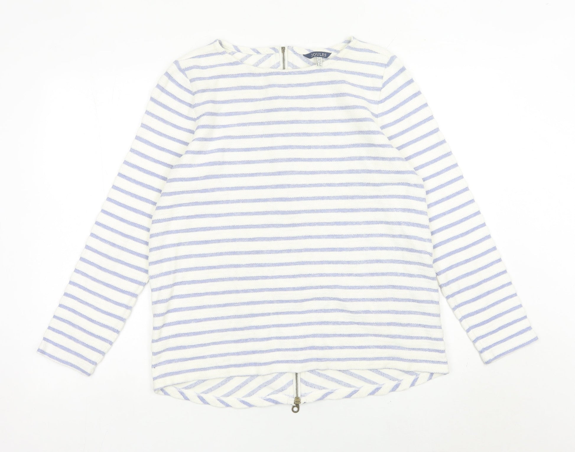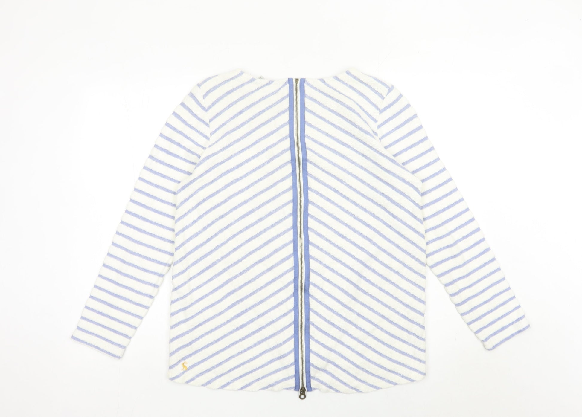 Joules Womens White Blue Striped Cotton Jumper Size 12 Boat Neck